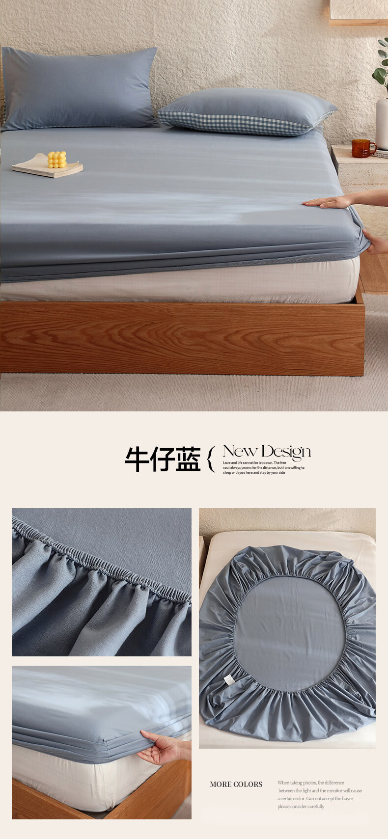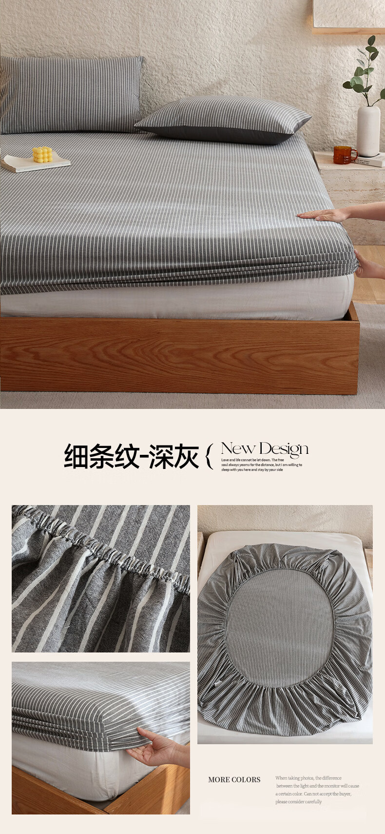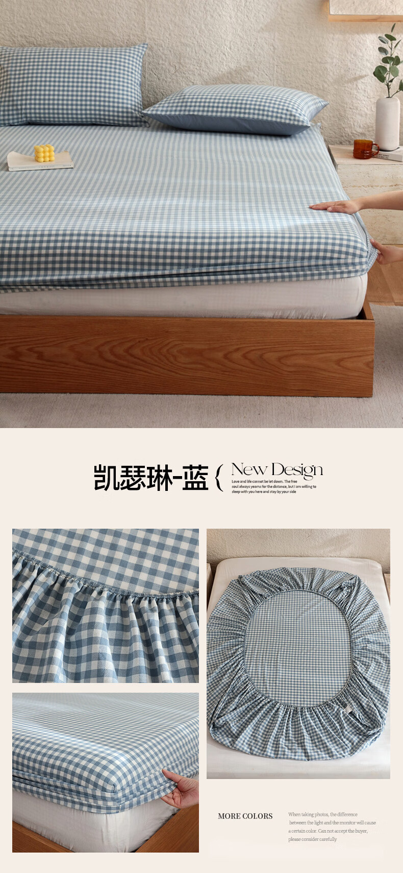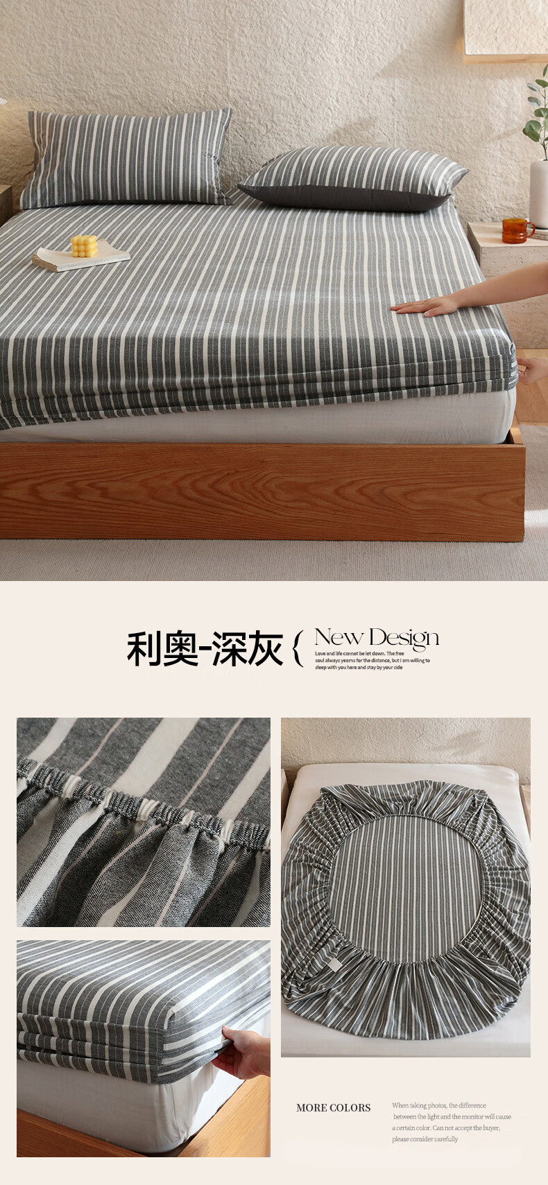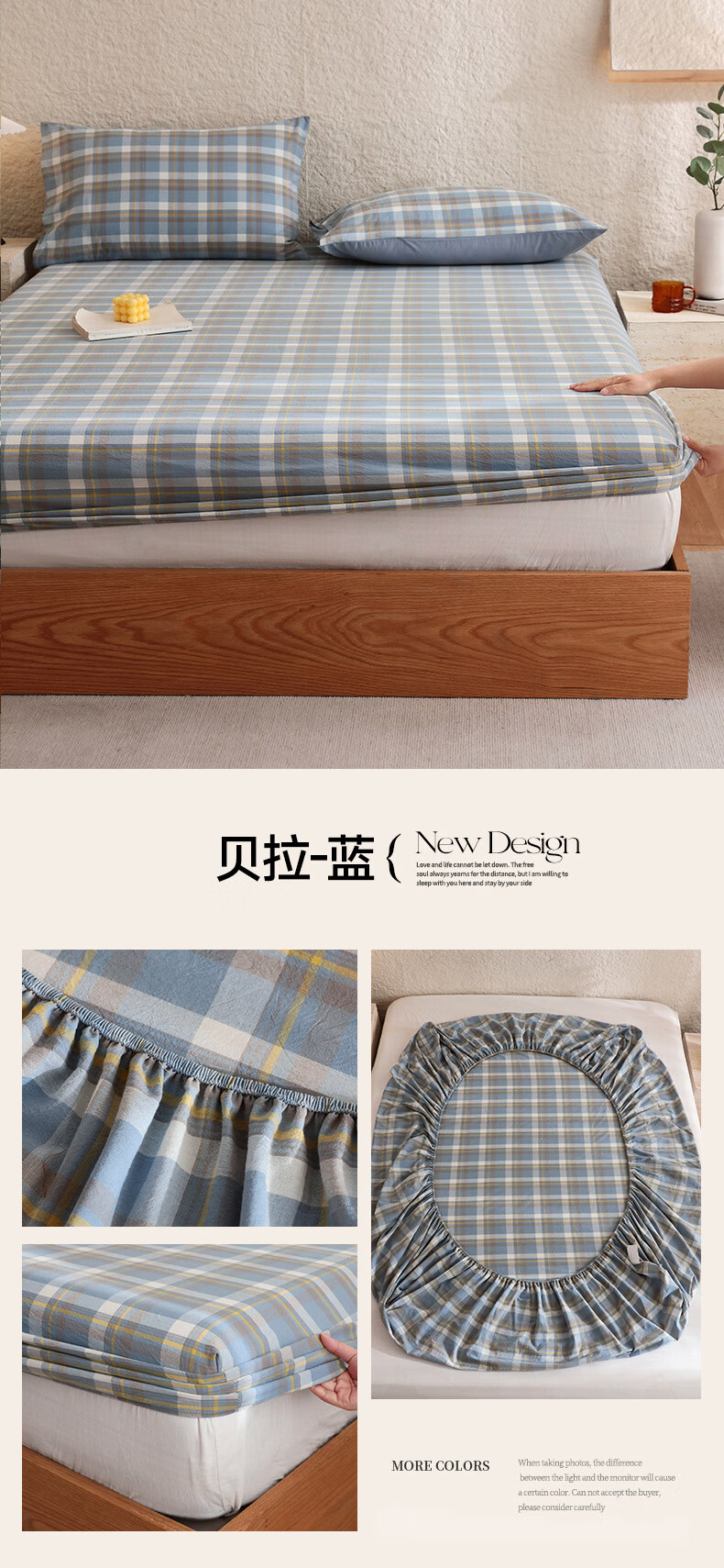 无印良品A类色织新疆全棉床笠1.8x2米纯棉床垫保护套单件宿舍家用防滑床罩 藏青【全棉水洗棉 亲肤柔软】 150cm*200cm 单床笠