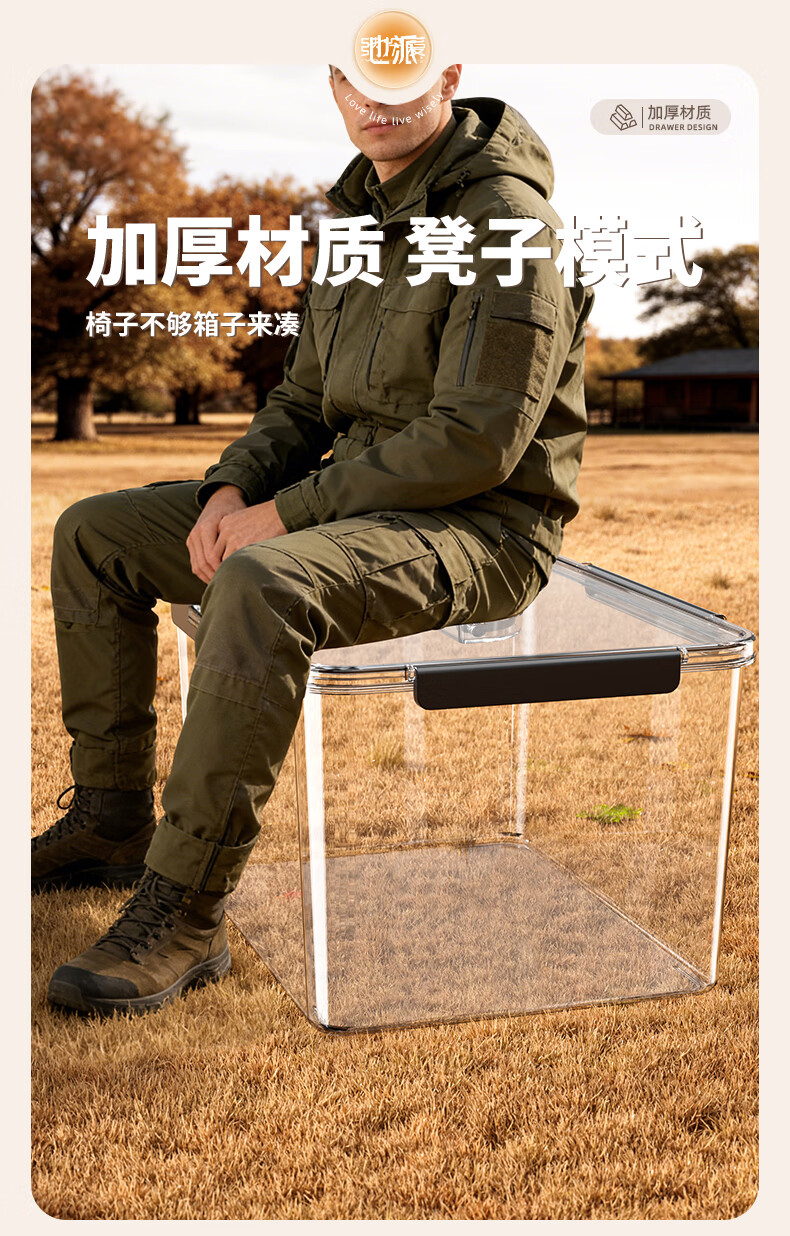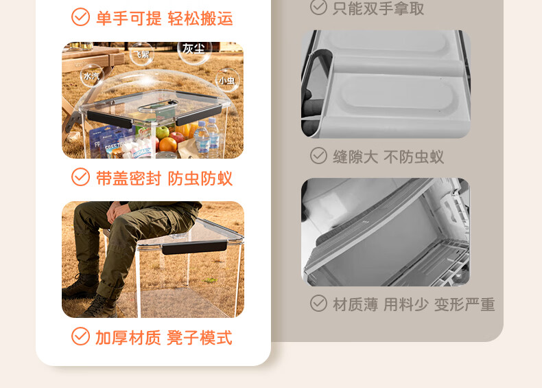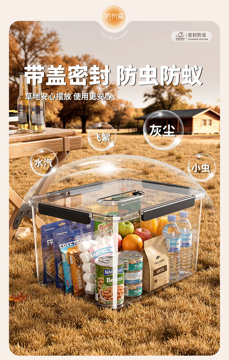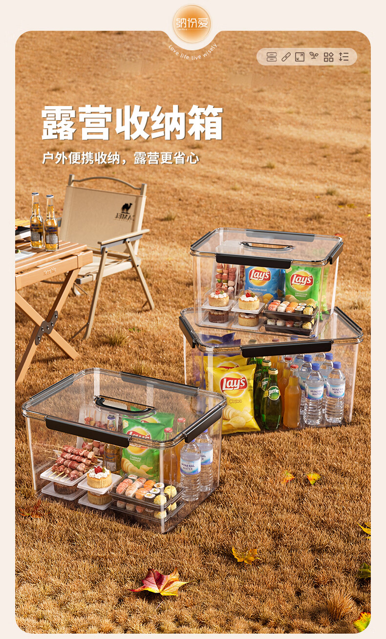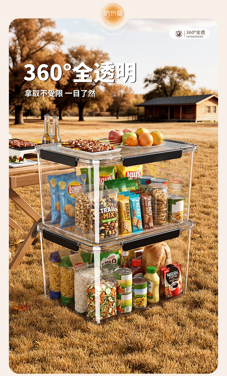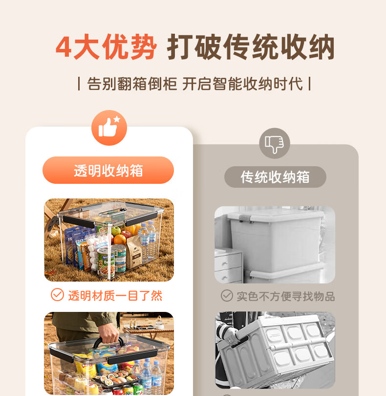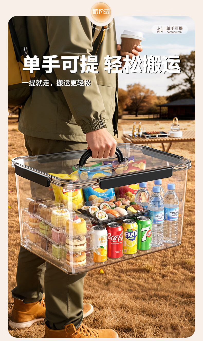 纳份爱手提露营收纳箱子后备箱整理箱野营野餐箱子车载用超大户外储物箱 透明-中号【360°高透/一体防蚊/单手可提】