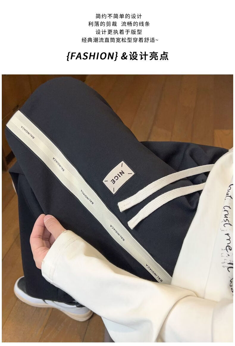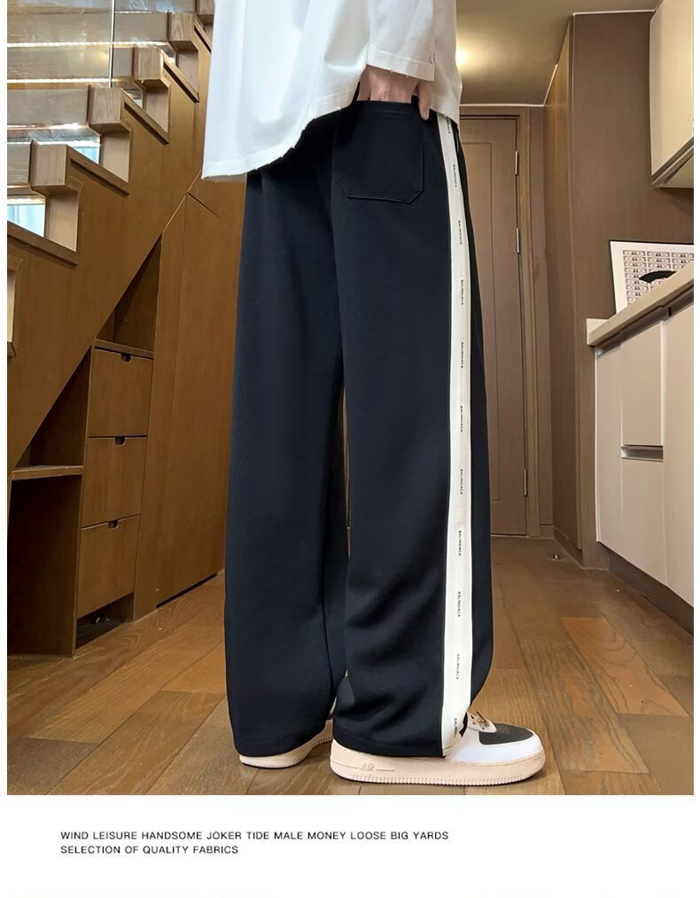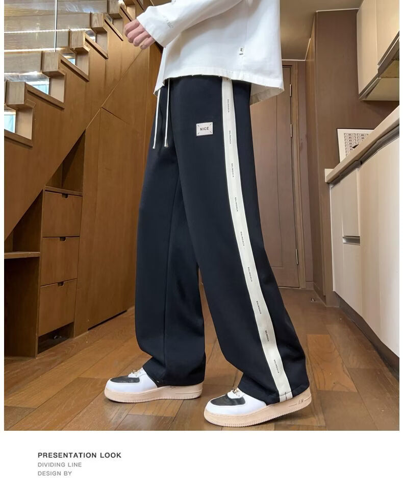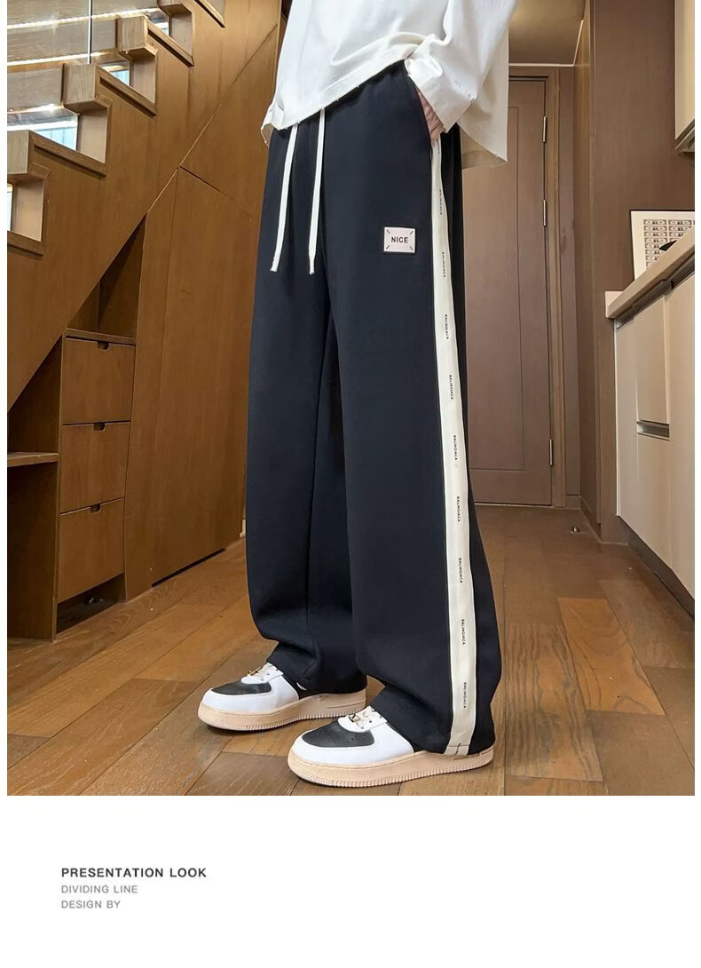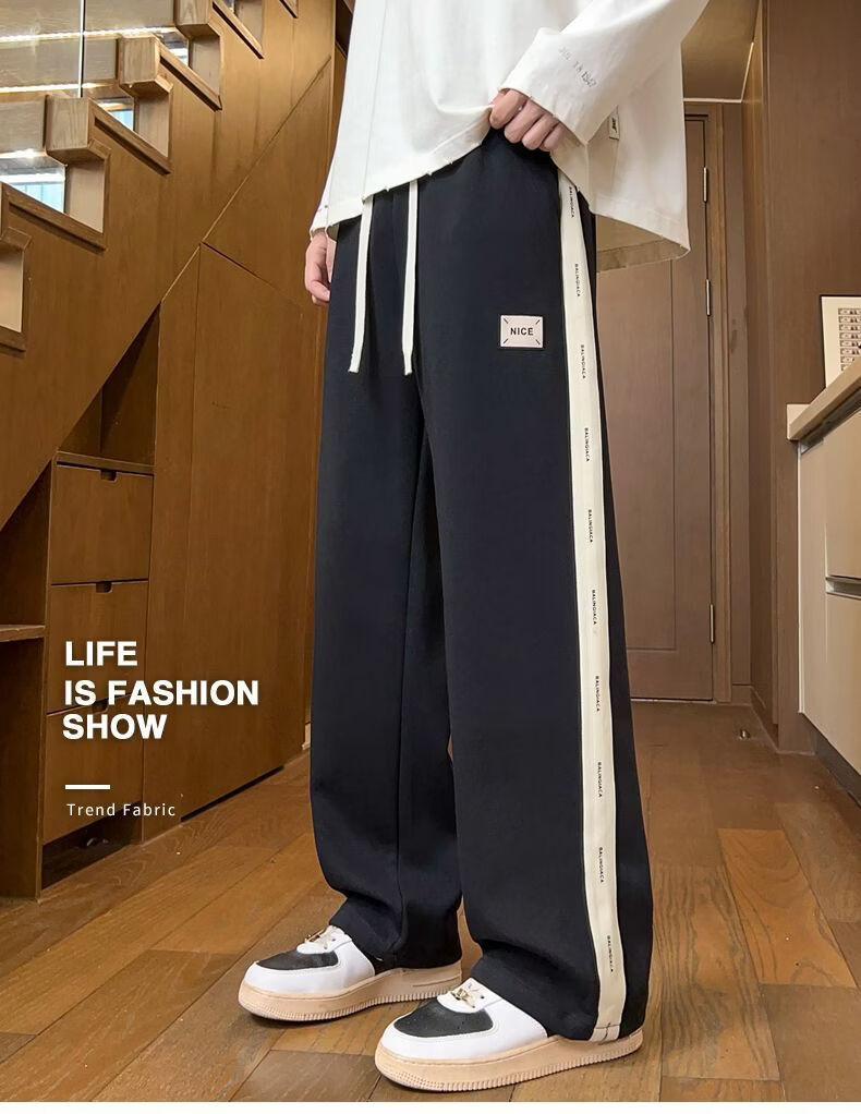 真维斯(Jeanswest)2026男士春季新款美式条纹运动卫裤潮牌垂感百搭宽松直筒休闲裤 黑色 S