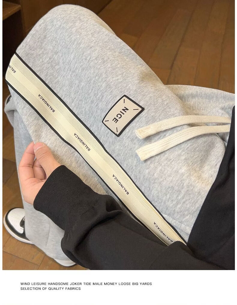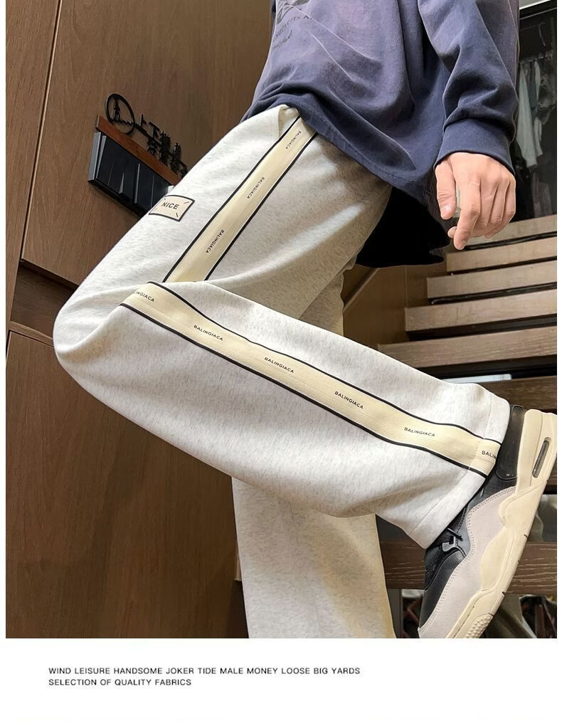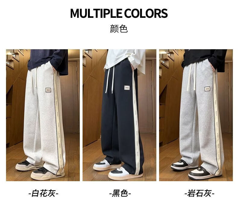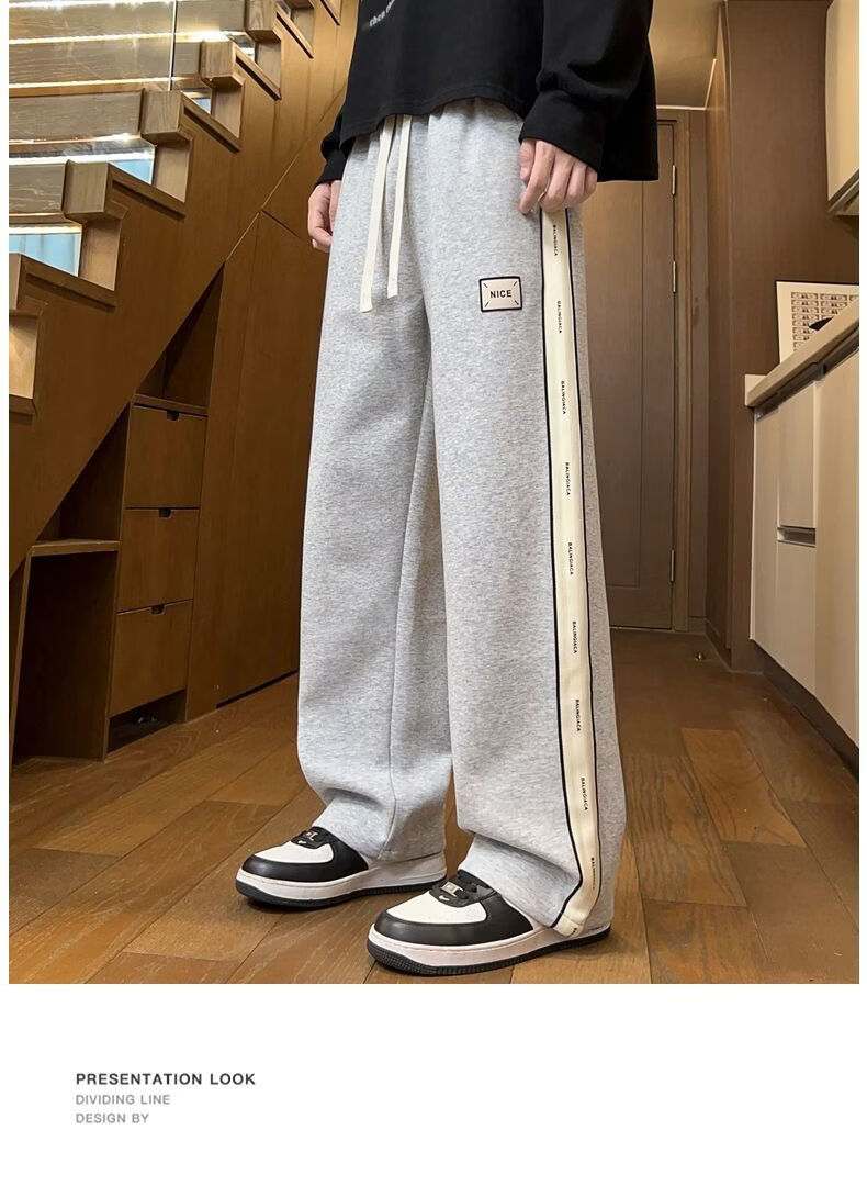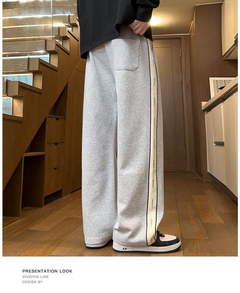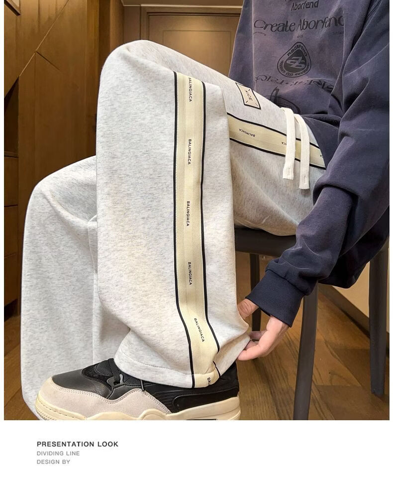 真维斯(Jeanswest)2026男士春季新款美式条纹运动卫裤潮牌垂感百搭宽松直筒休闲裤 黑色 S