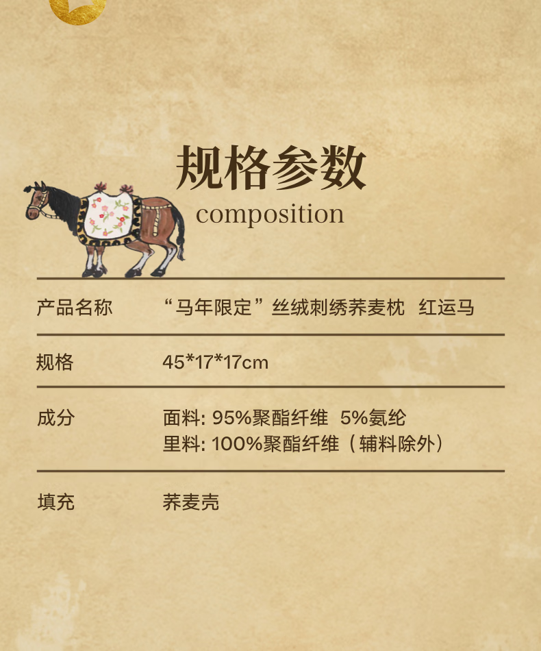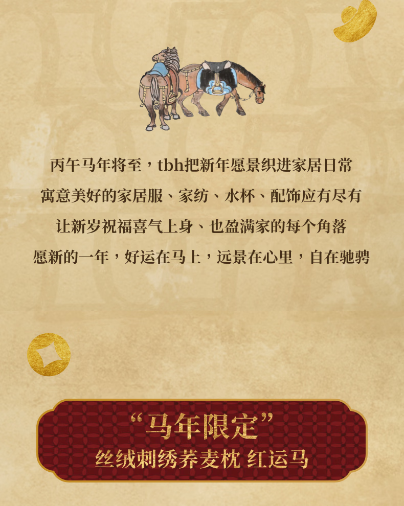 野兽派家居(tbh)马年限定丝绒刺绣荞麦枕成人单只装枕芯枕头 “马年限定”丝绒刺绣荞麦枕-红运马 1