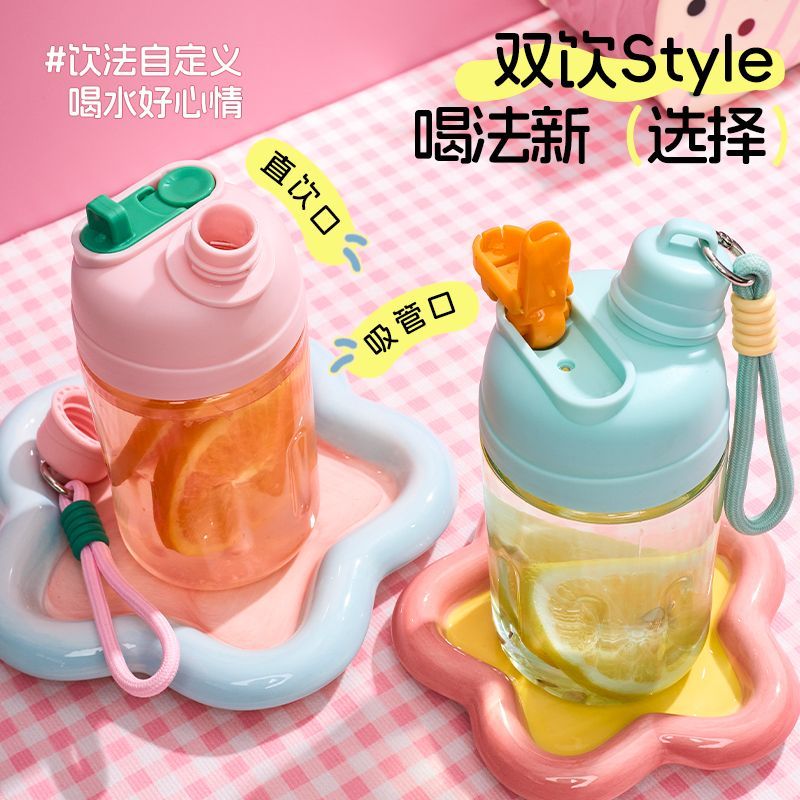 2025新款双饮水杯女高颜值学生上学专用小巧便携吸管塑料杯子夏天【2月26日发完】