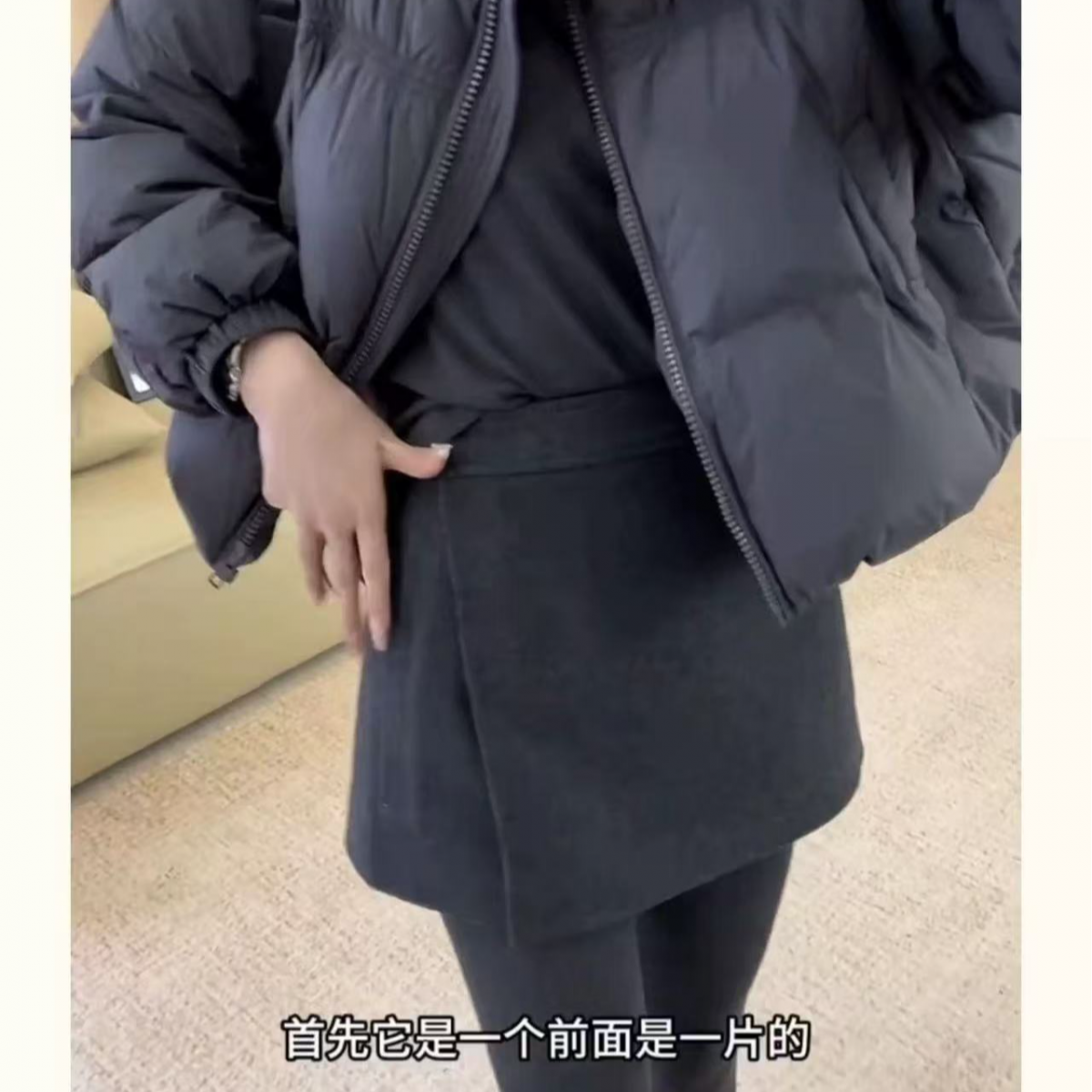 不规则毛呢裙裤加厚短裤大码冬高腰遮肚外穿打底a字休闲阔腿靴裤