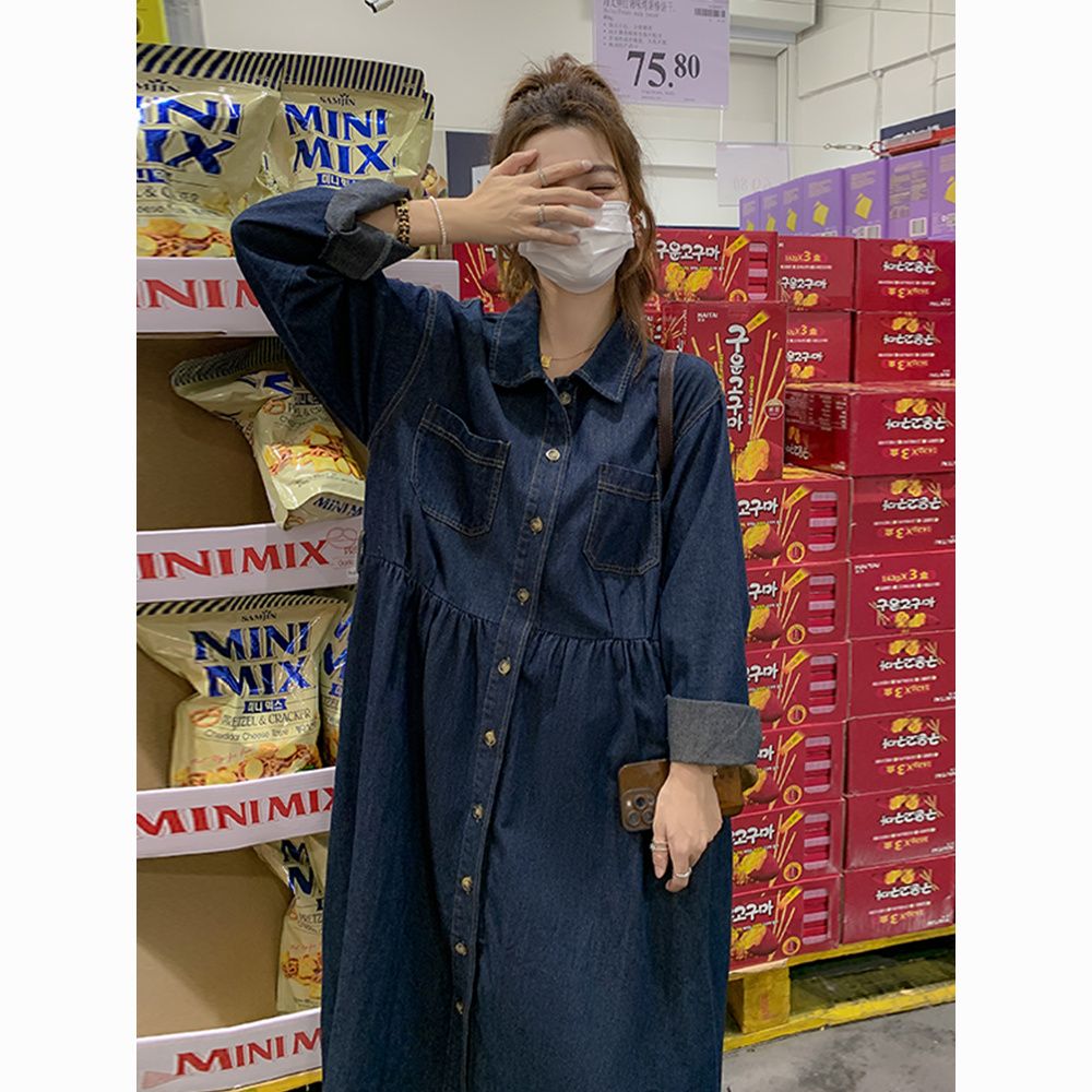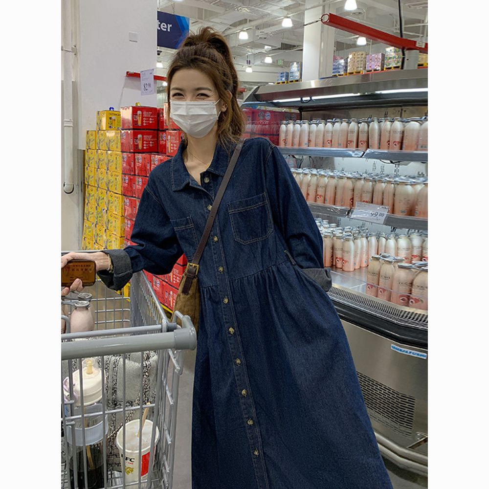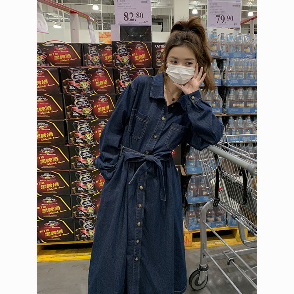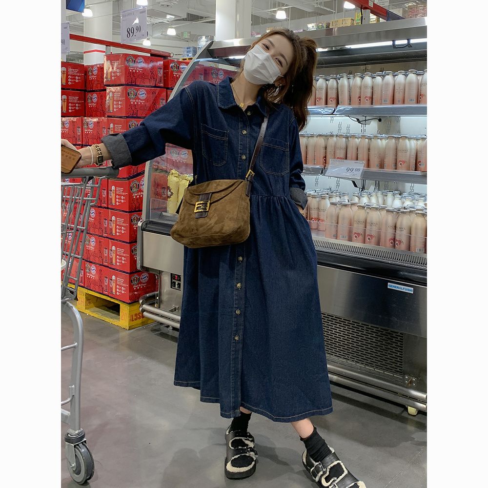 法式复古牛仔连衣裙春秋2025中长款新款高级收腰气质显瘦衬衫