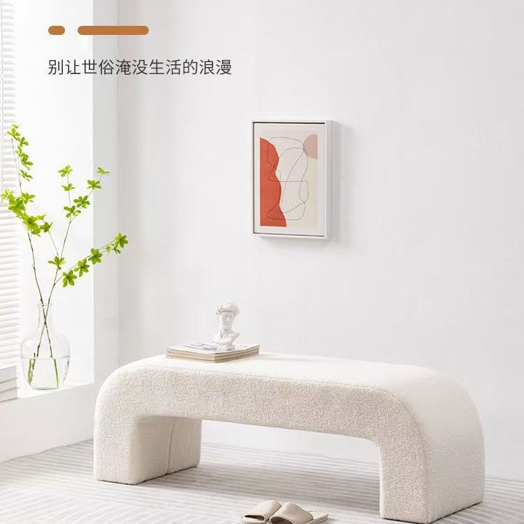 北欧简约网红衣帽间卧室床尾凳入户长条换鞋凳羊羔绒客厅沙发凳子