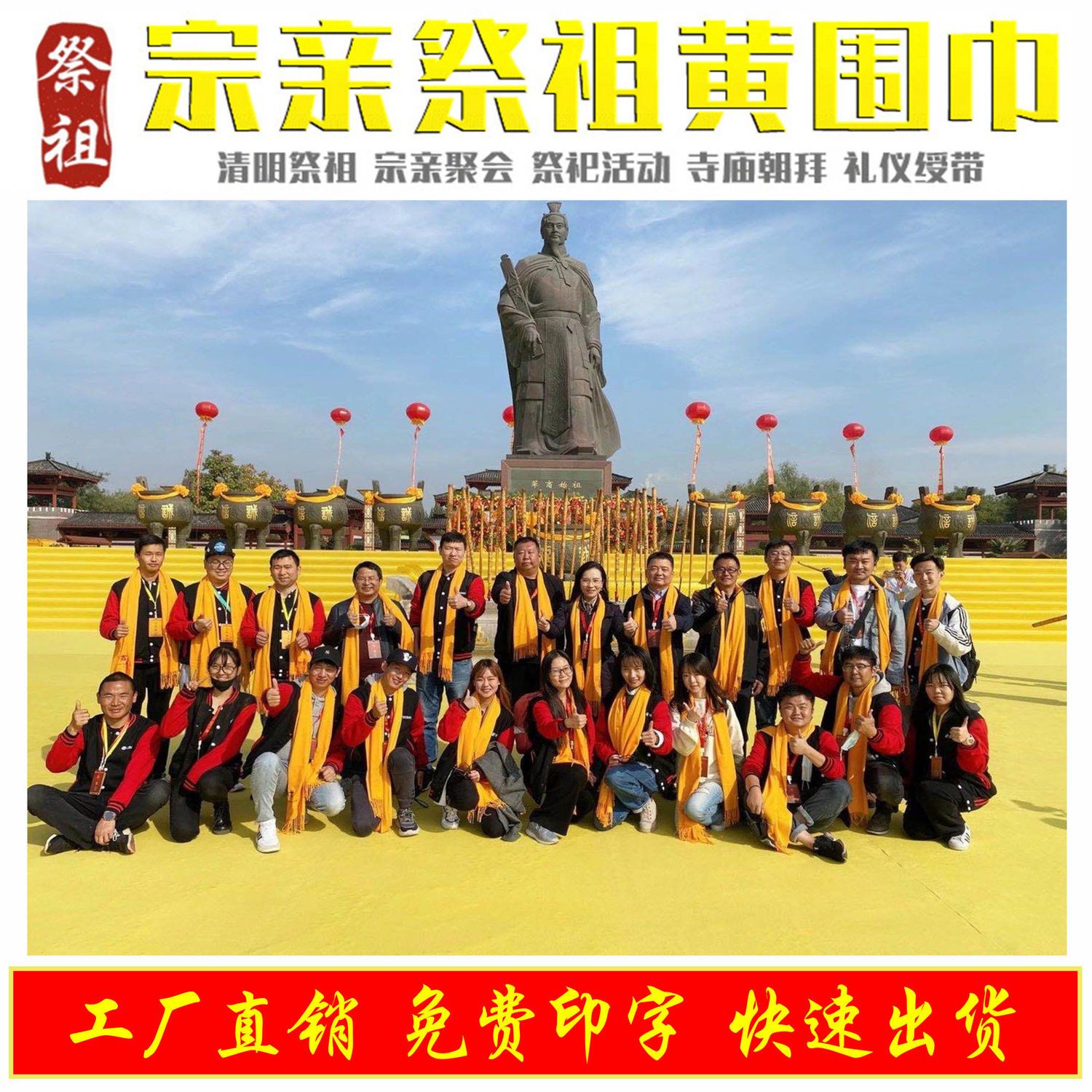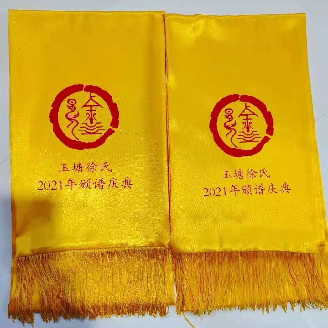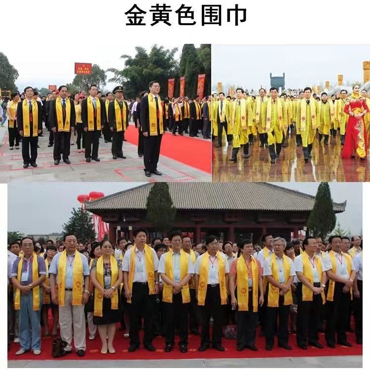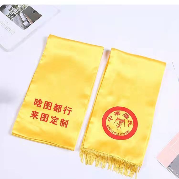 黄色围巾定制logo绸缎丝巾清明祭祀组训宗亲家族典礼印字庆典聚会