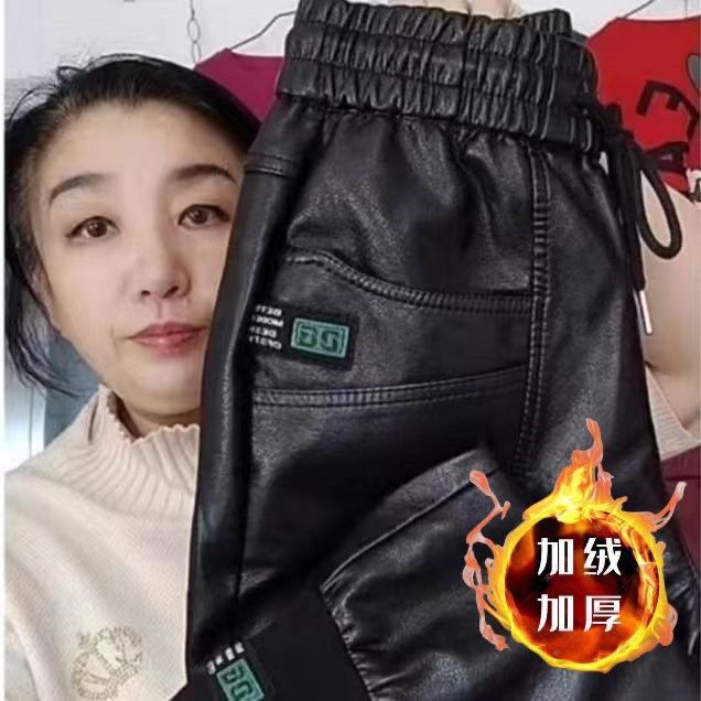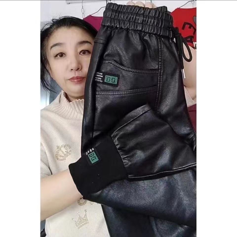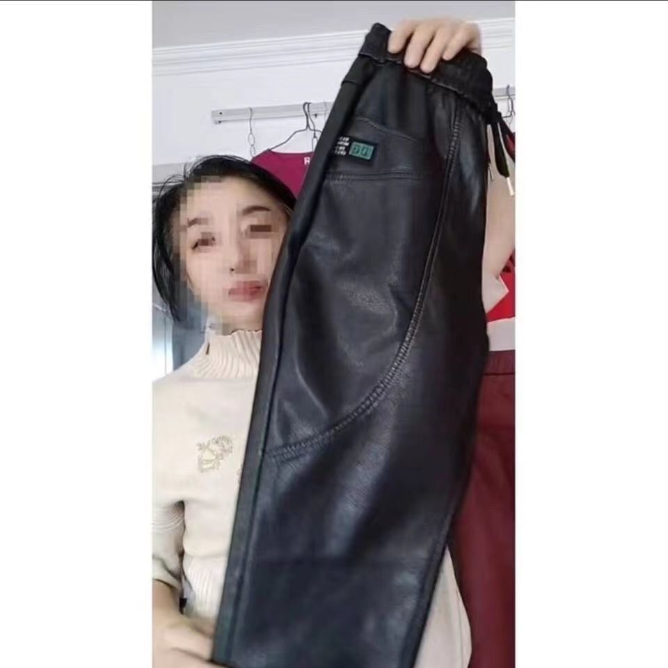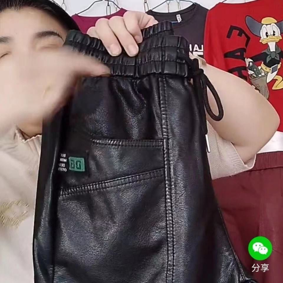 男士皮裤多口袋秋冬加绒加厚松紧弹力腰系绳防风束脚外卖骑手皮裤
