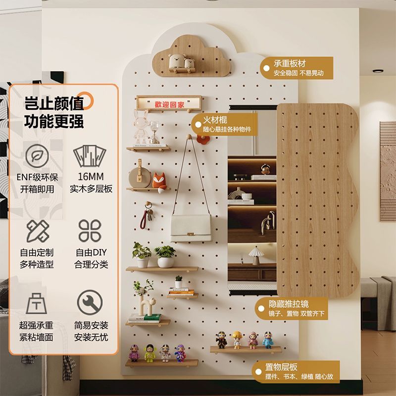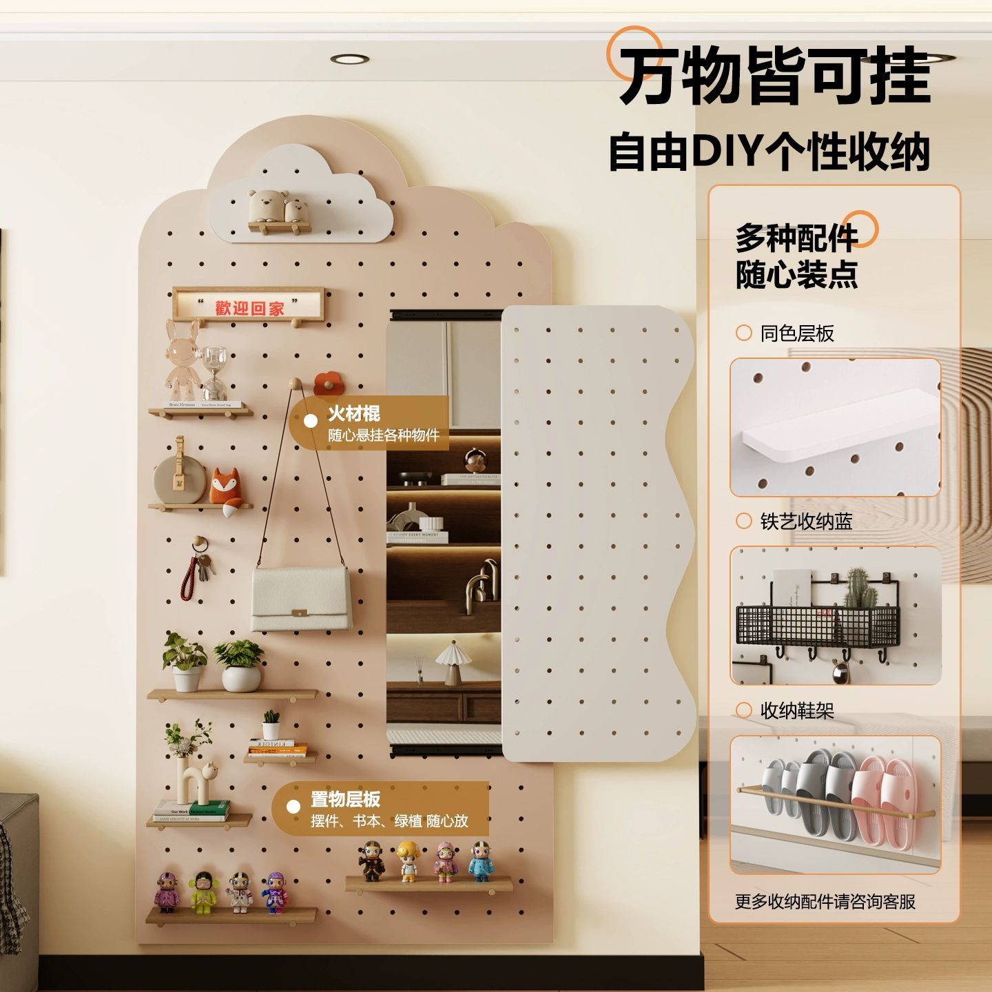 云朵洞洞板墙面入户玄关客厅展示置物上墙式收纳架家用隐形全身镜