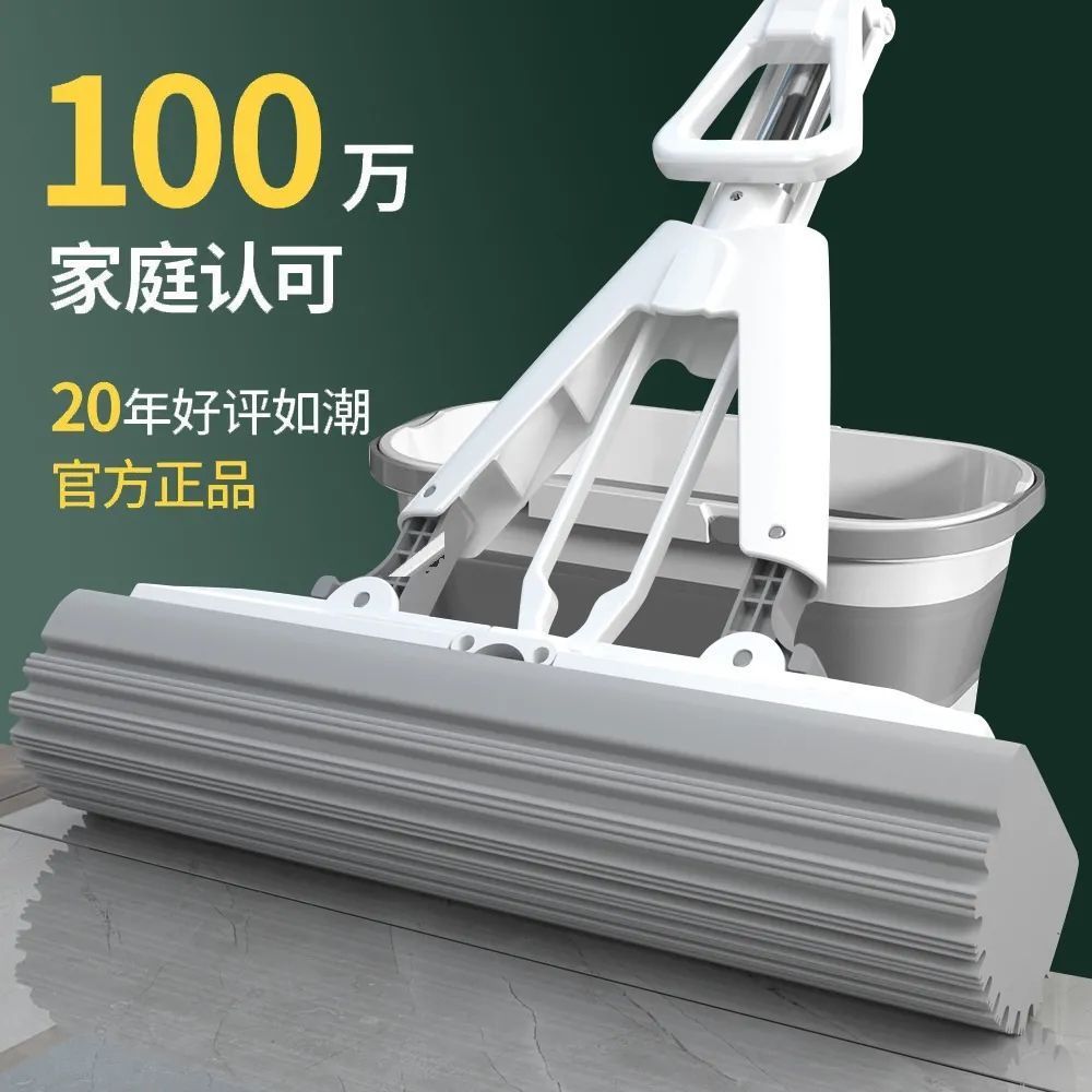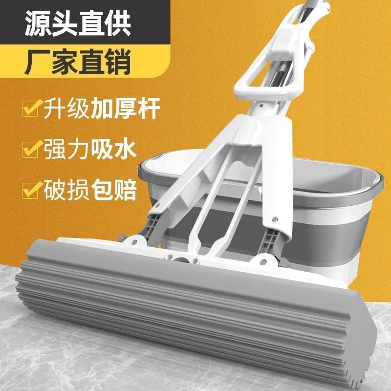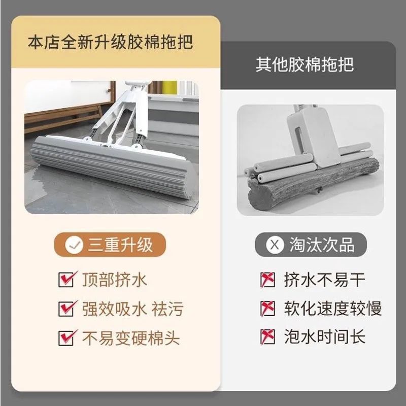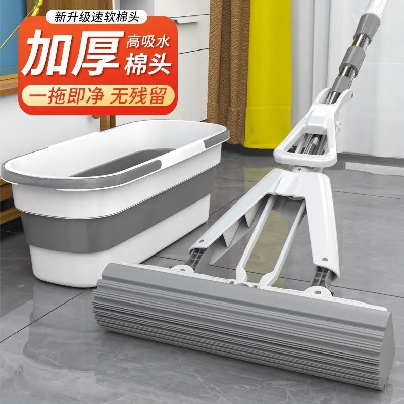 新款海绵拖把免手洗干湿两用对折挤式水家用懒人拖把吸水胶棉拖把