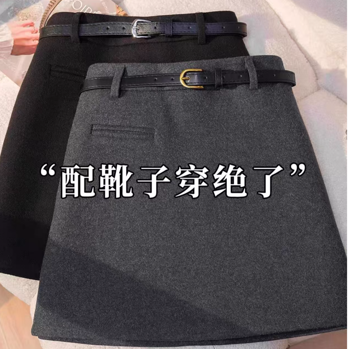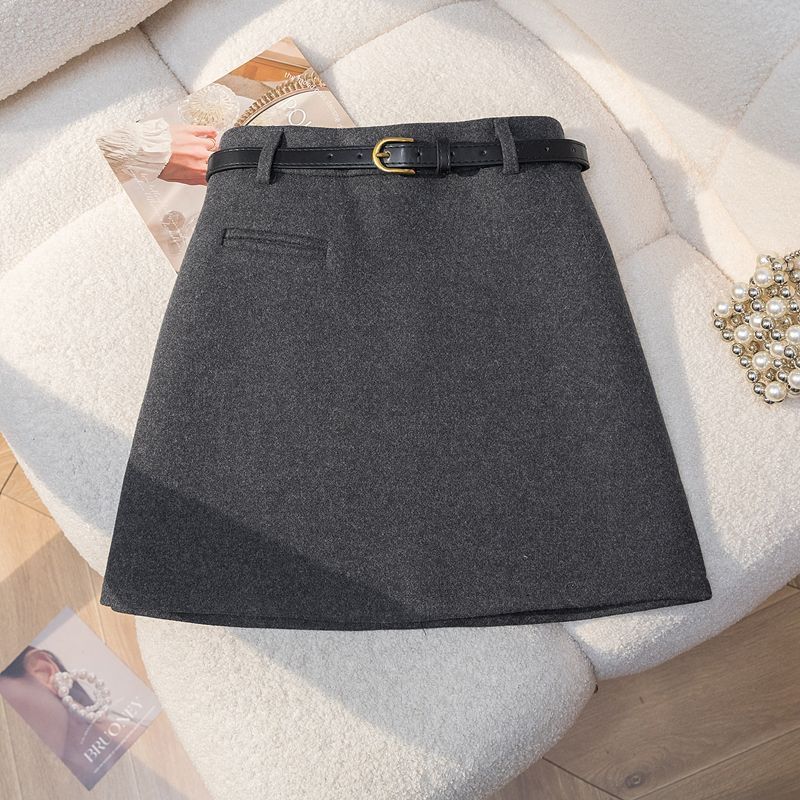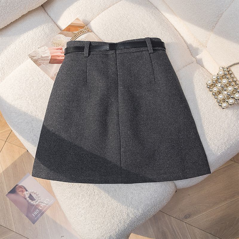 毛呢半身裙女秋冬加厚短裙韩系穿搭小众设计感高腰显瘦遮胯A字裙