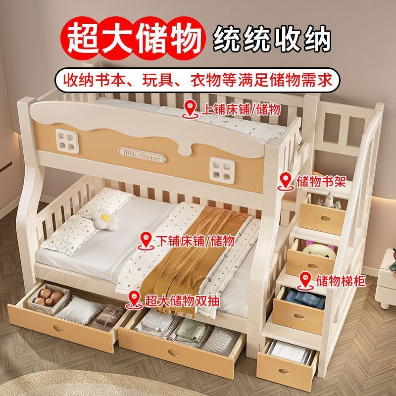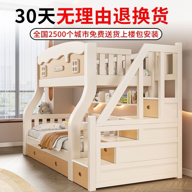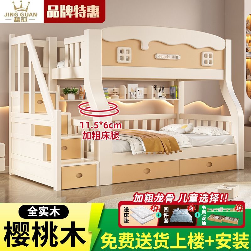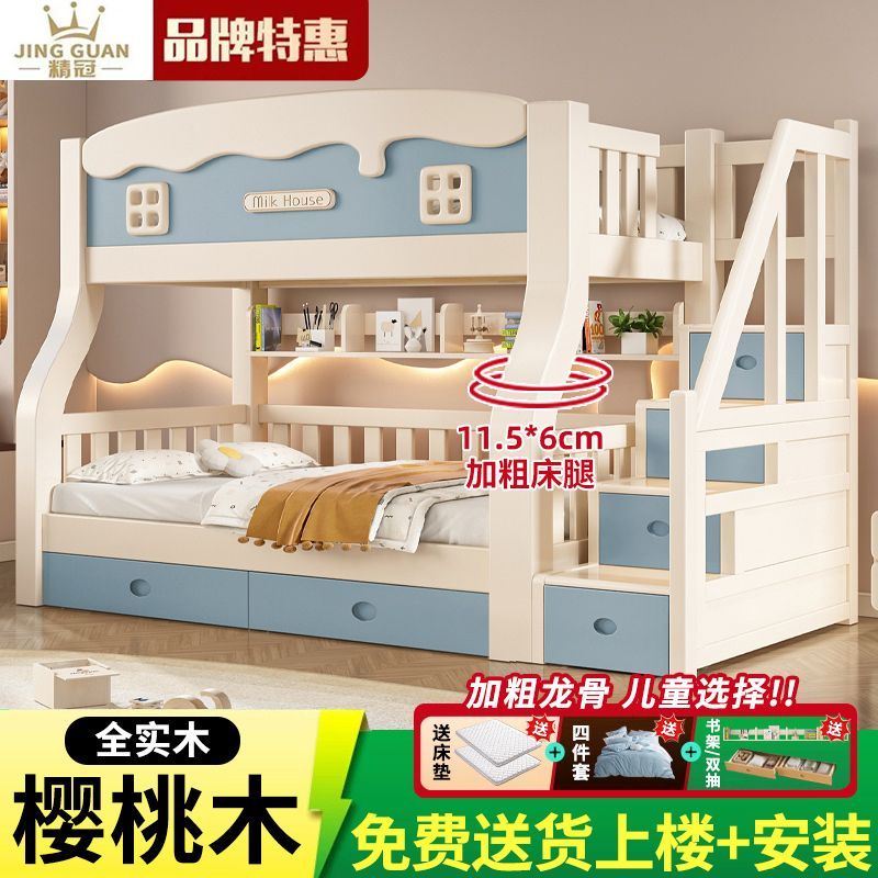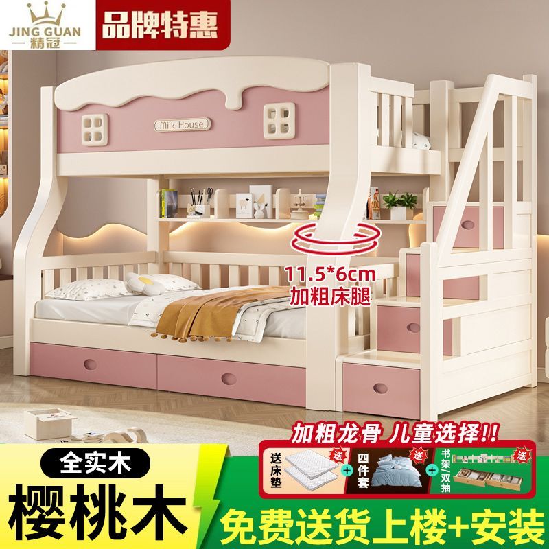 实木上下床铺儿童床加厚加高多功能组合床儿童房樱桃木高低公主床