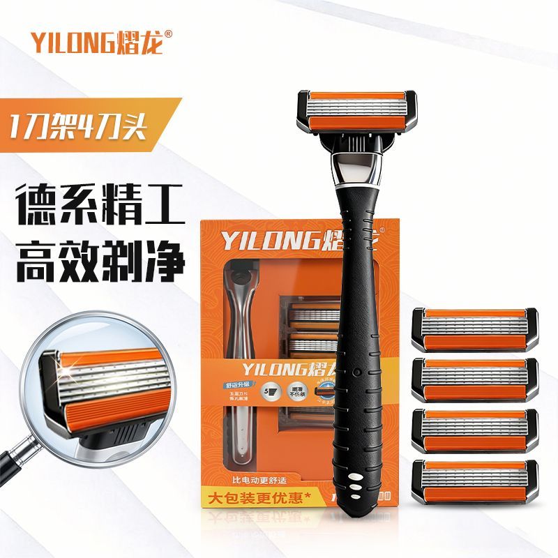 熠龙品牌新款五层刮胡刀手动剃须刀片男士手工胡须刀德系精工刀片