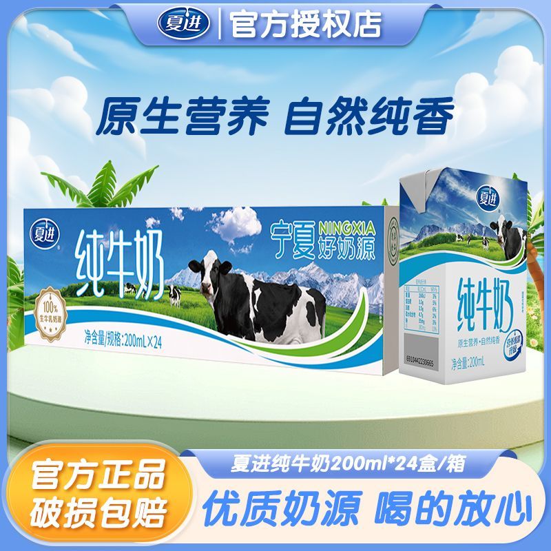 11月产 夏进纯牛奶200ml*24盒整箱家庭早餐搭档纯奶正品特价