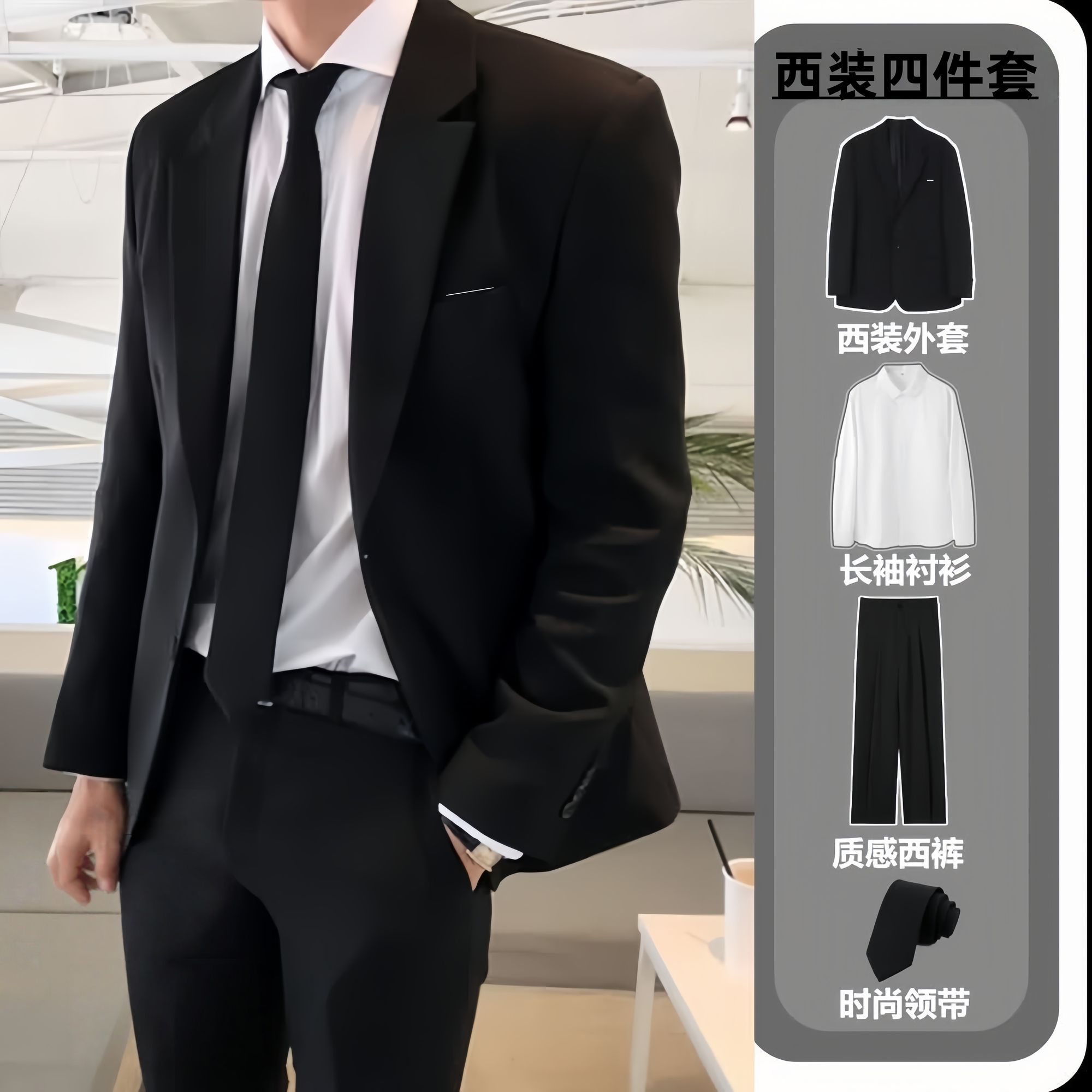 四件套西服韩版套装修身男士职业正装商务休闲西装伴郎结婚礼服装