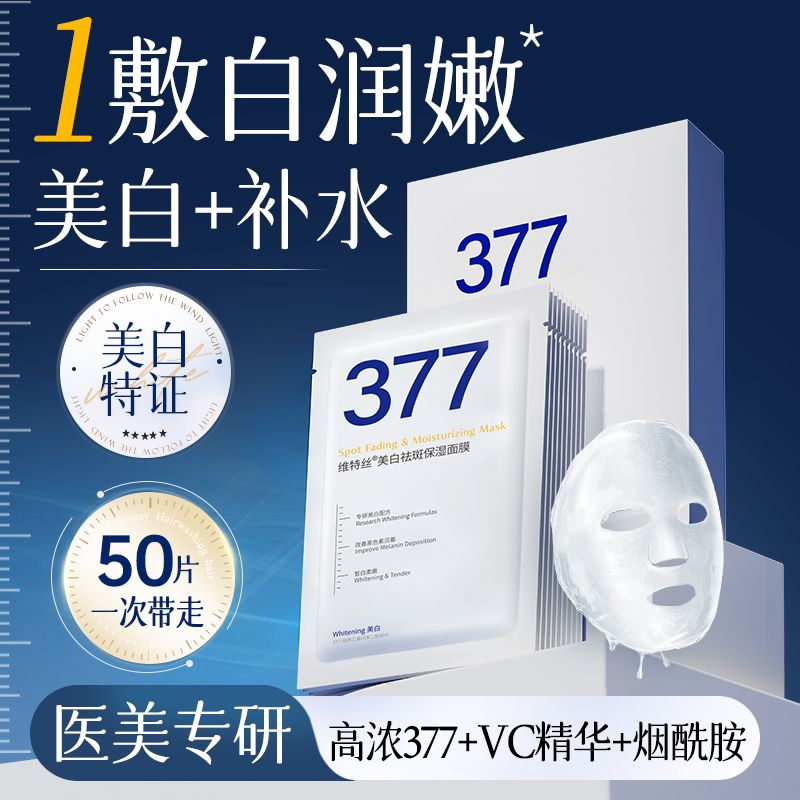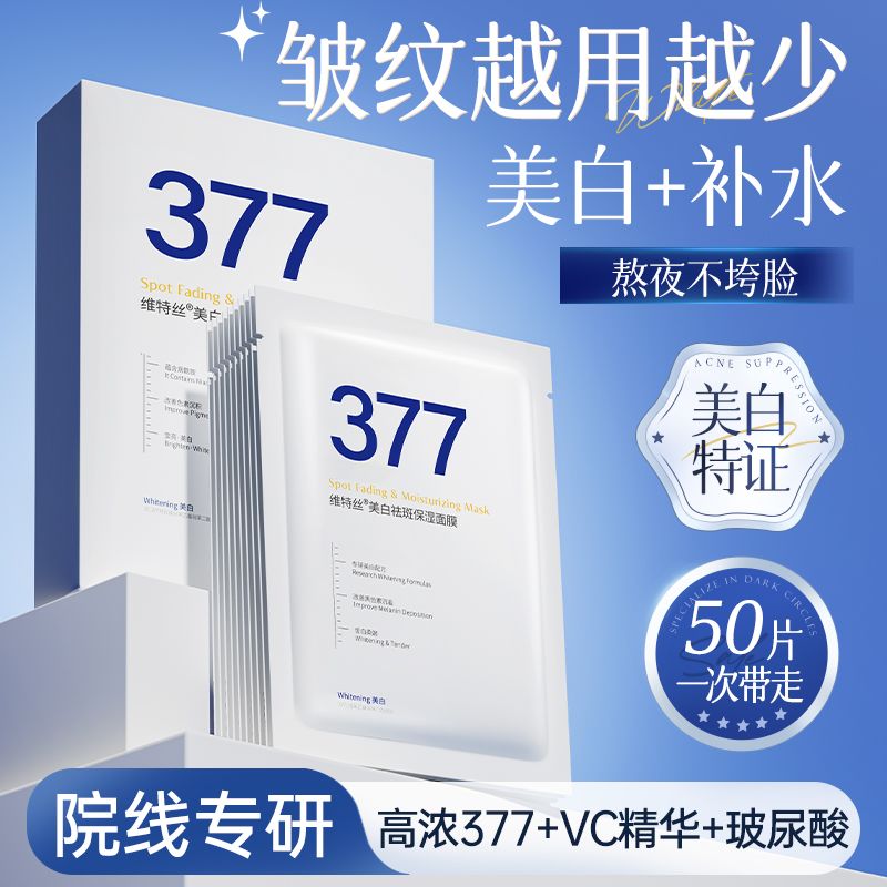 【官方正品】377美白淡斑面膜补水保湿去黄晒后修护抗氧化玻尿酸