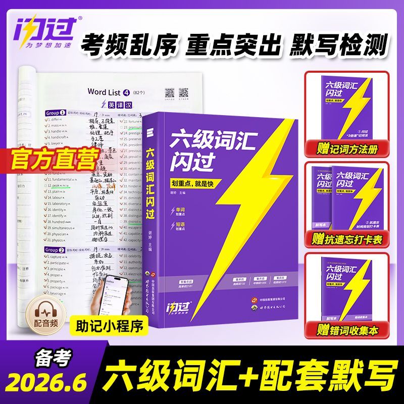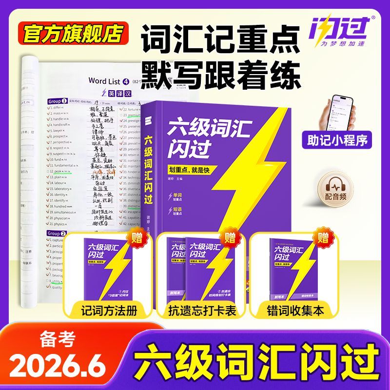 【假一赔十】2026.6六级词汇闪过旗舰版英语六级真题单词书默写本