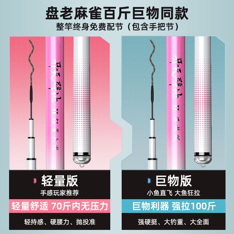 杰诺猛男粉轻量大物竿超轻超硬碳素黑坑鲢鳙巨青台钓鱼竿套装正品