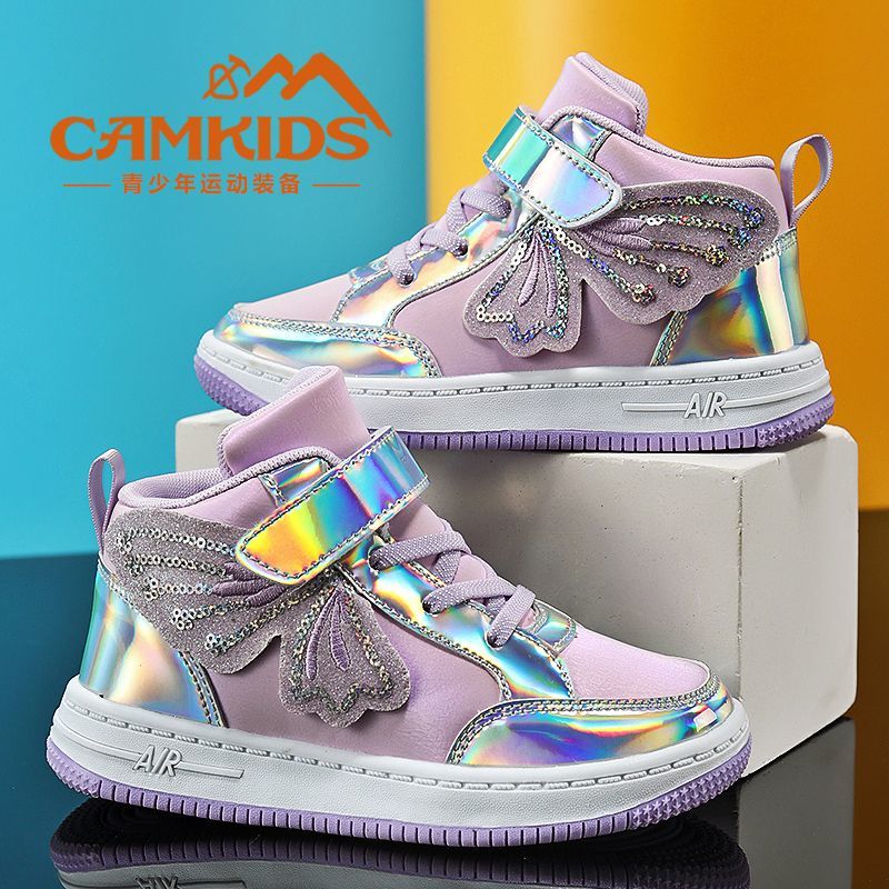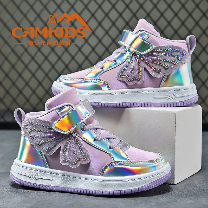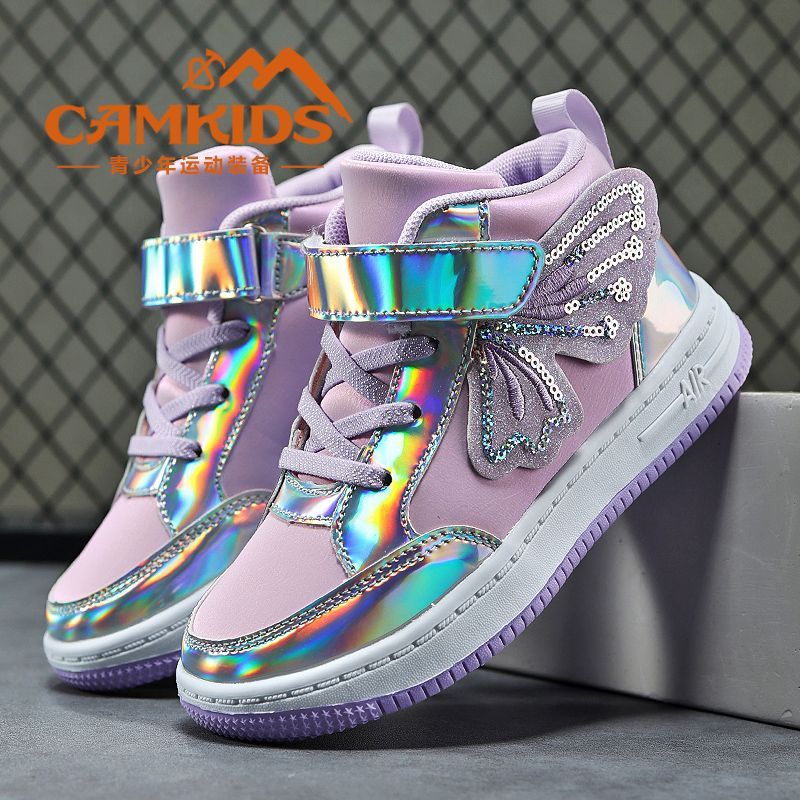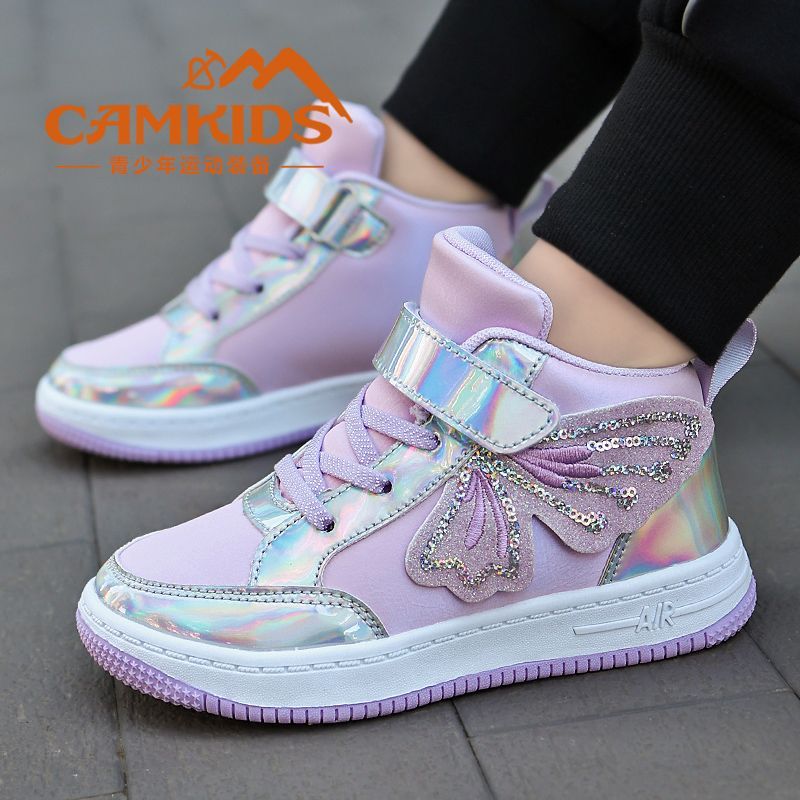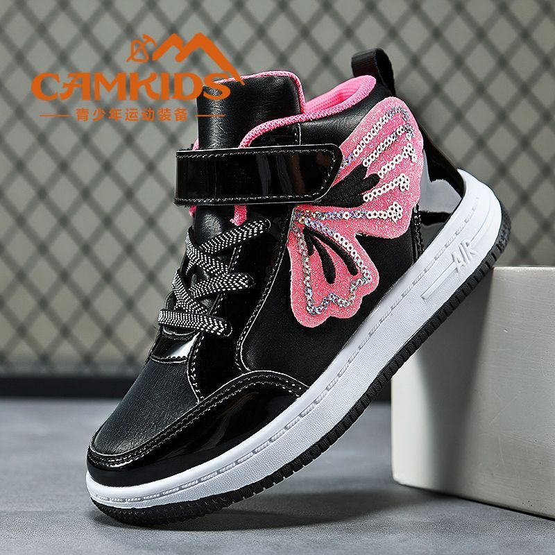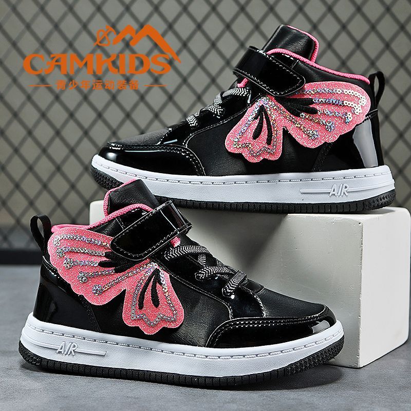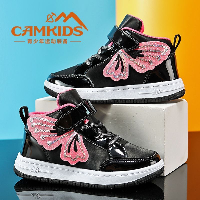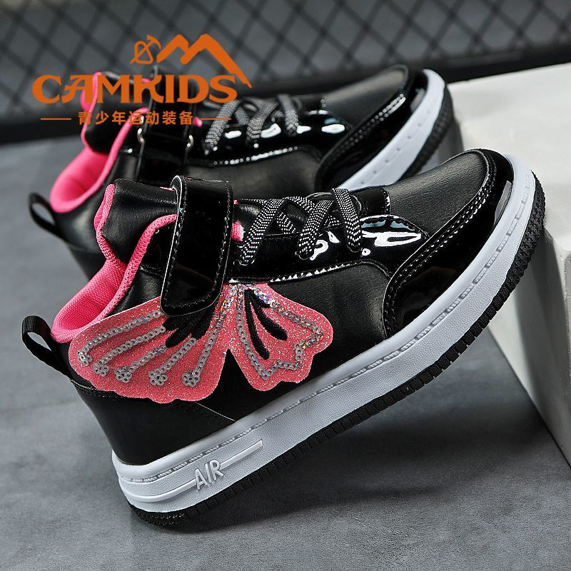 CAMKIDS女童板鞋2024新款皮面防水儿童运动鞋防滑耐磨女孩休闲鞋