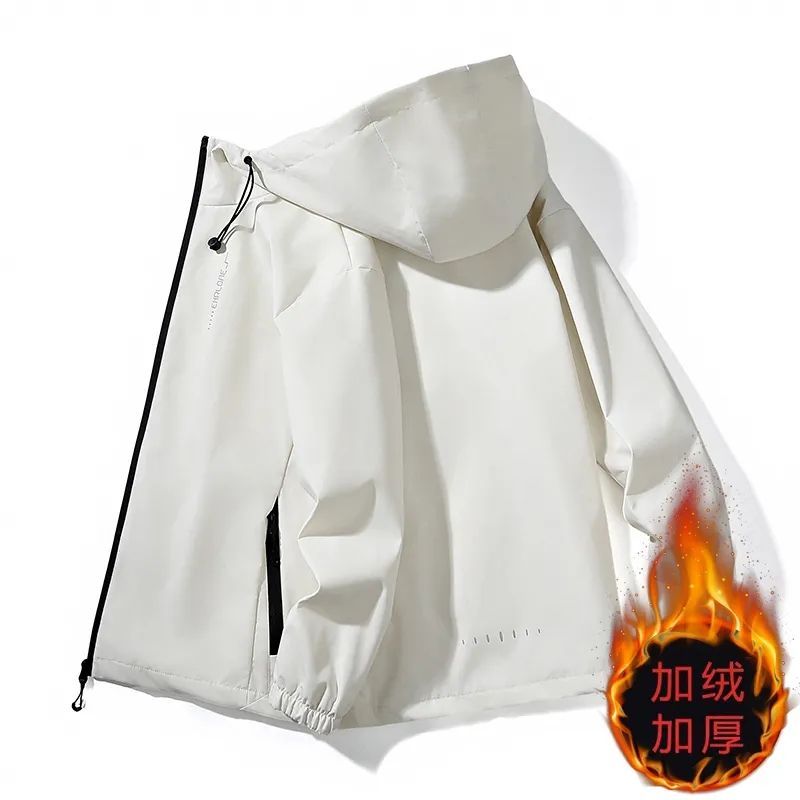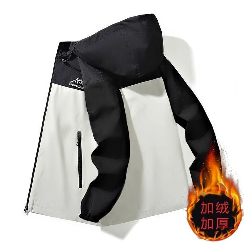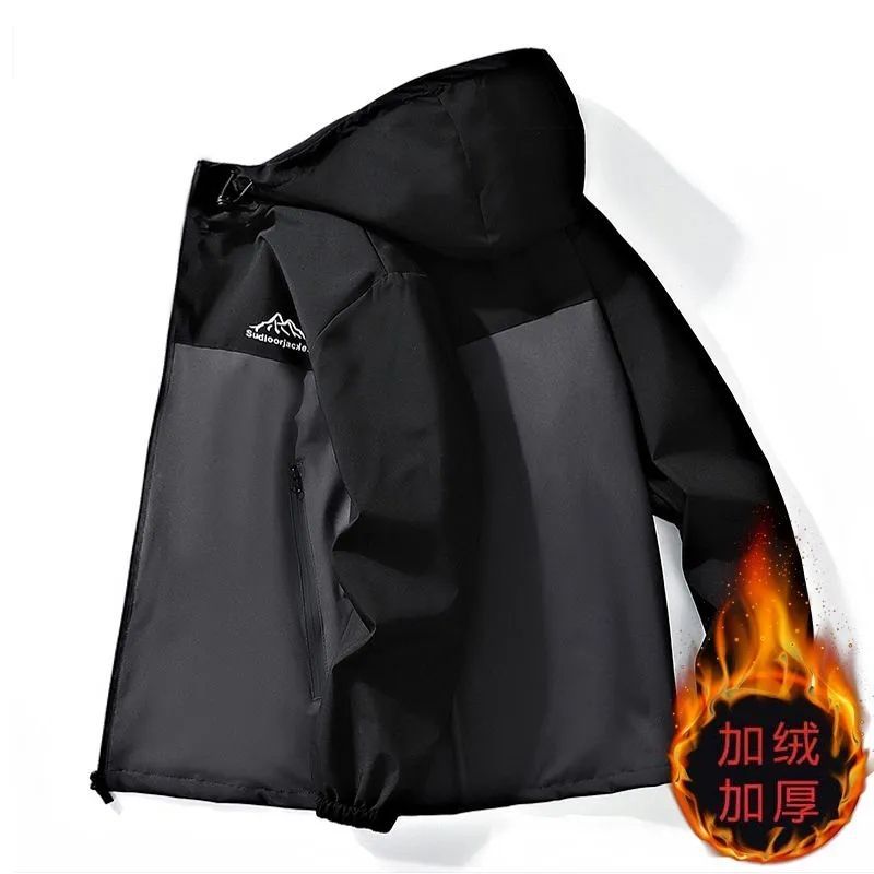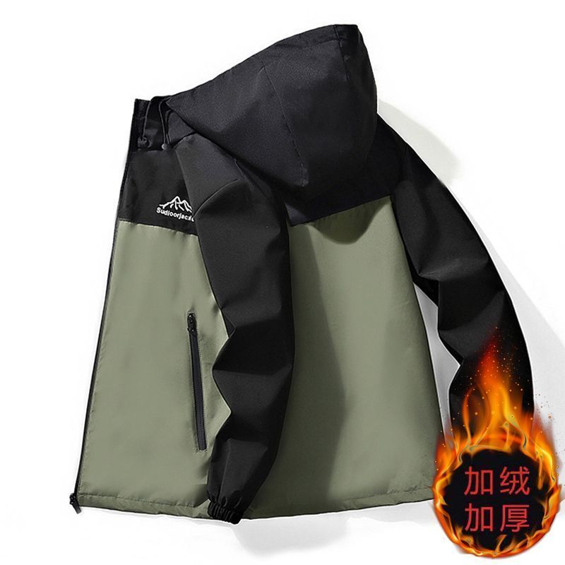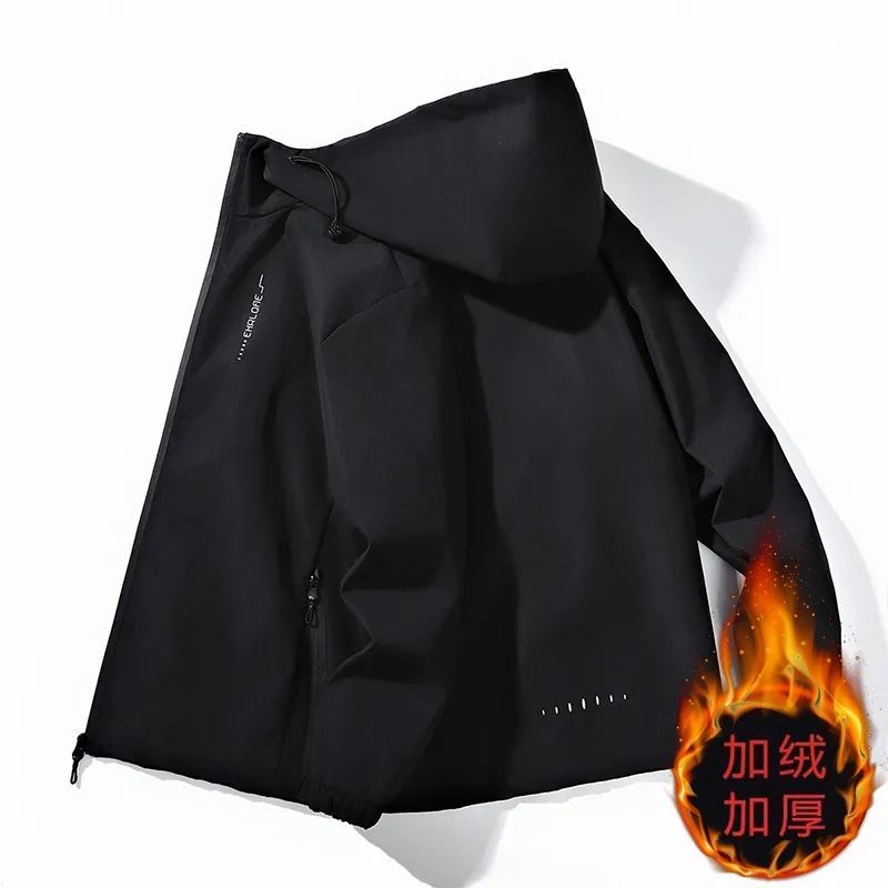 加绒加厚男士外套秋冬季潮流休闲连帽男装夹克防风防水保暖冲锋衣