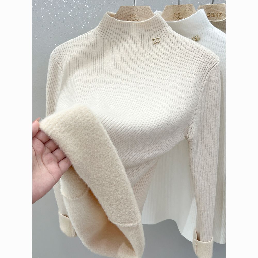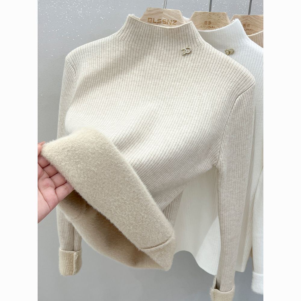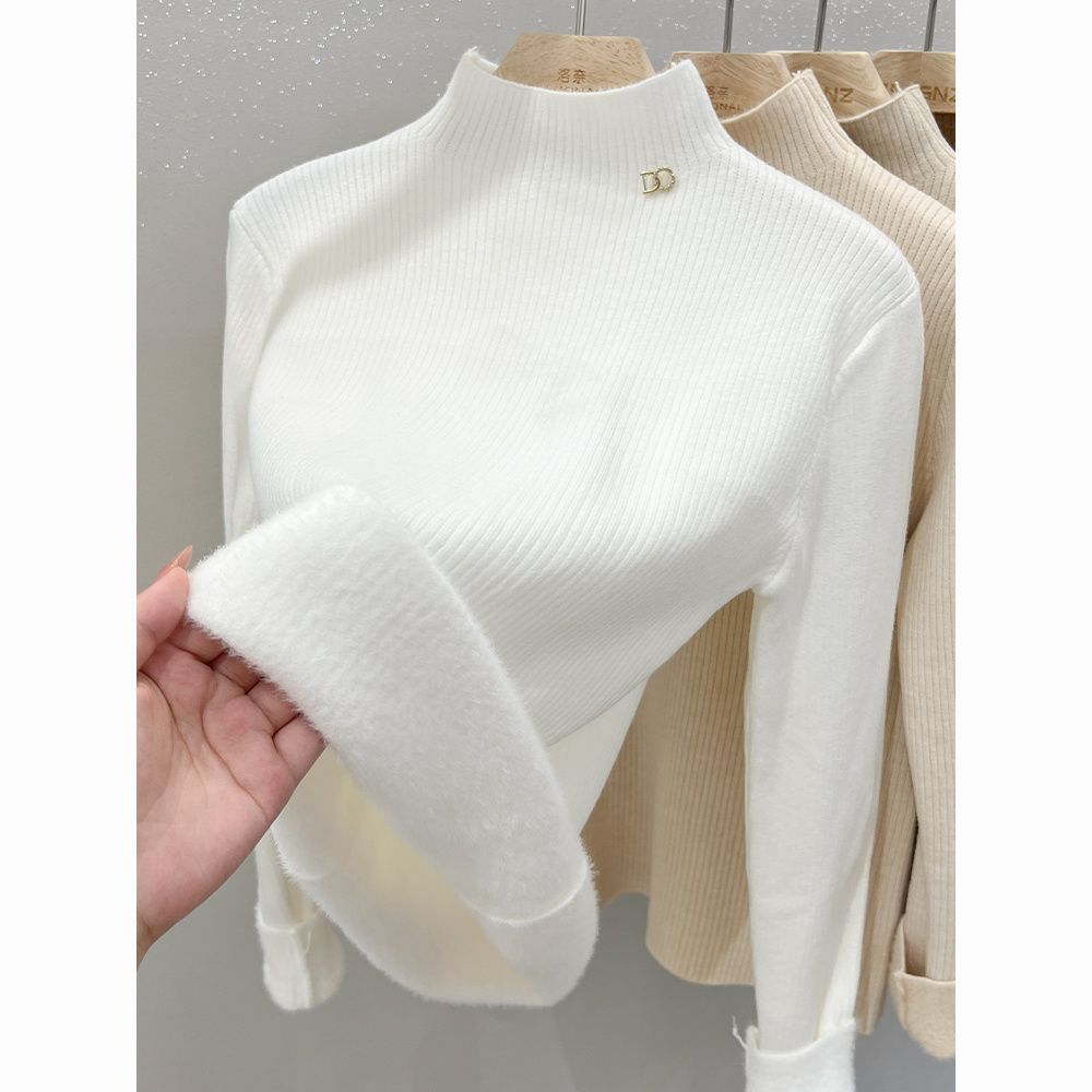 半高领加绒打底衫女内搭秋冬2025新款保暖一体绒水貂绒毛衣女上衣