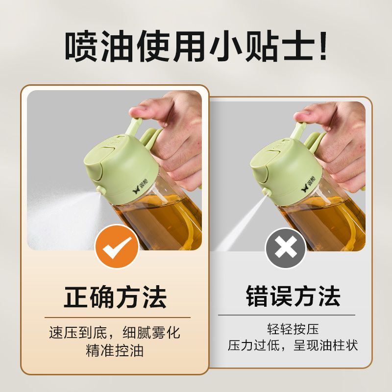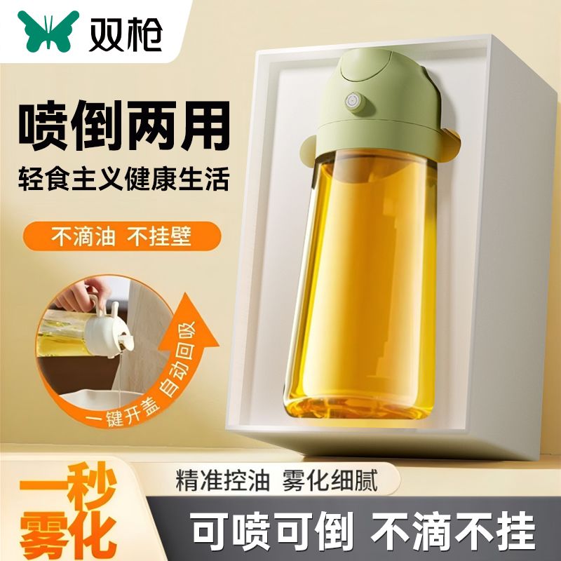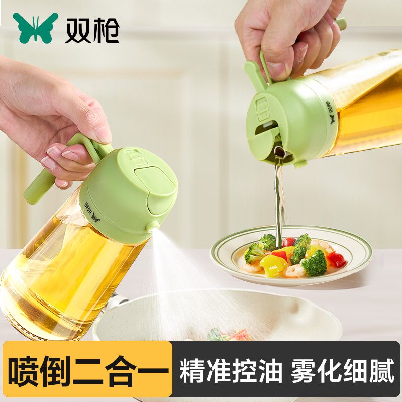 双枪家用油壶喷雾两用二合一酱油醋玻璃调料瓶按压自动开合不挂油