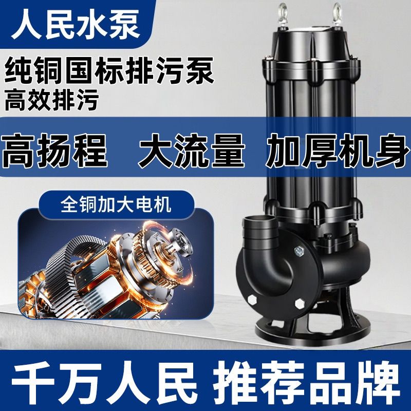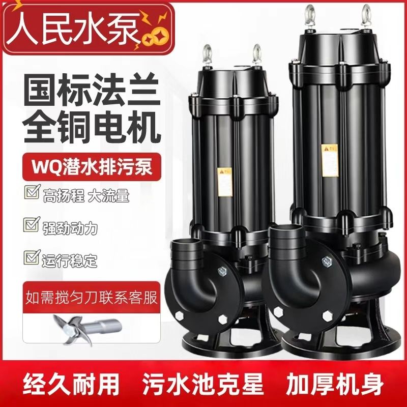上企人民国标正品污水泵380V三相潜水排污泵单相220V家用潜水泵【2月26日发完】