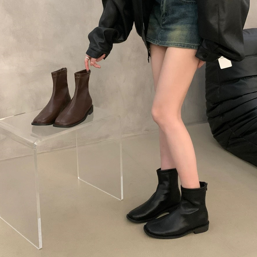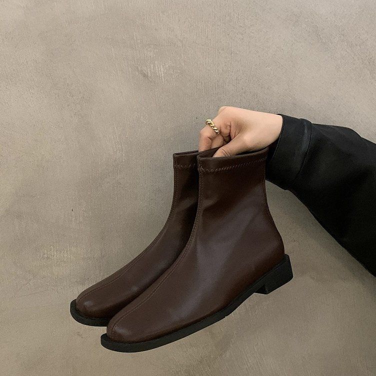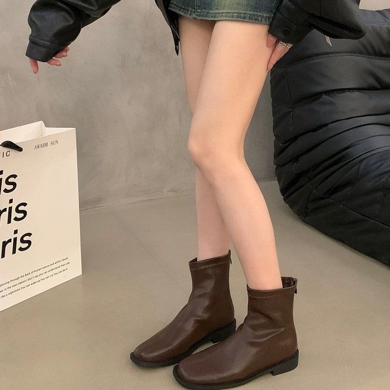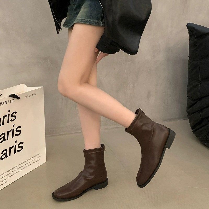 短靴女2026春秋新款巨好穿复古软皮爆款马丁靴平底单靴瘦瘦靴42码