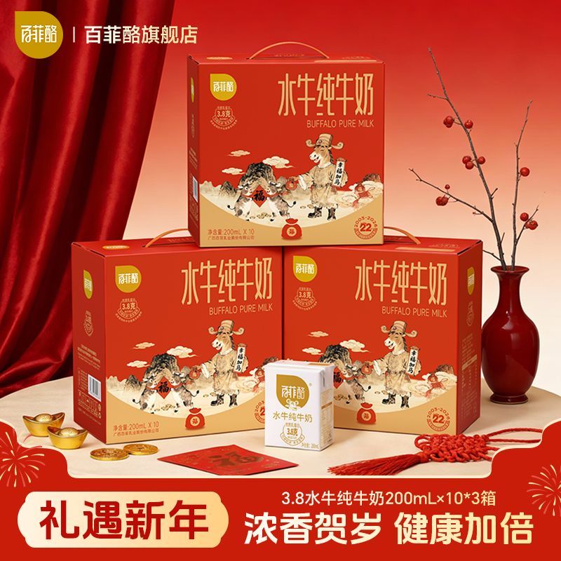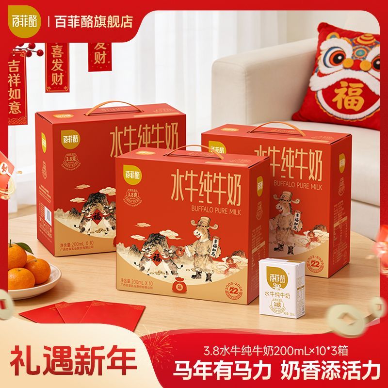 【年货送礼】百菲酪囤货水牛纯牛奶200ml*30盒学生儿童营养牛奶