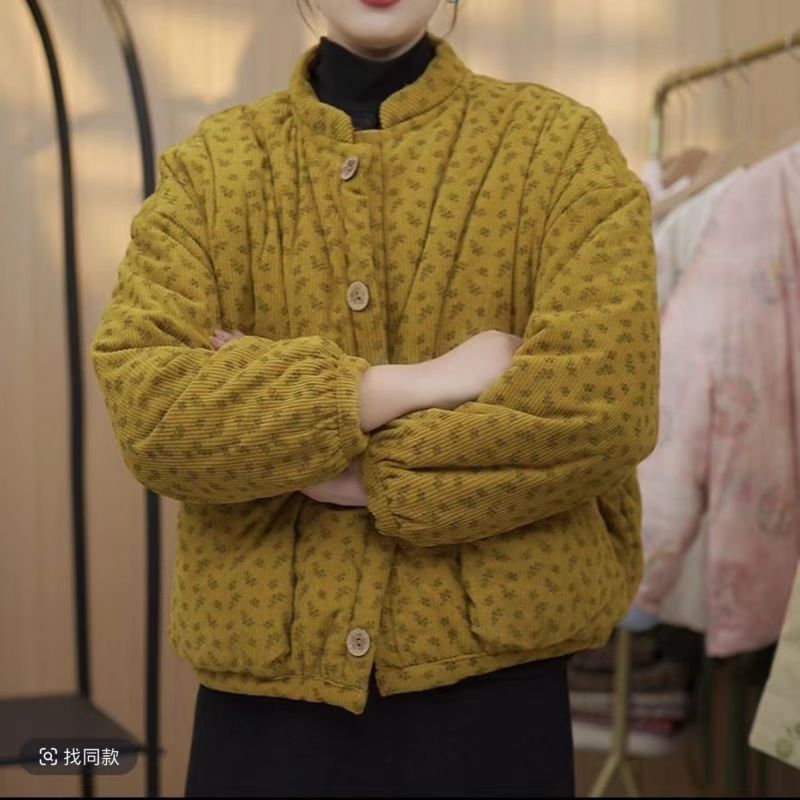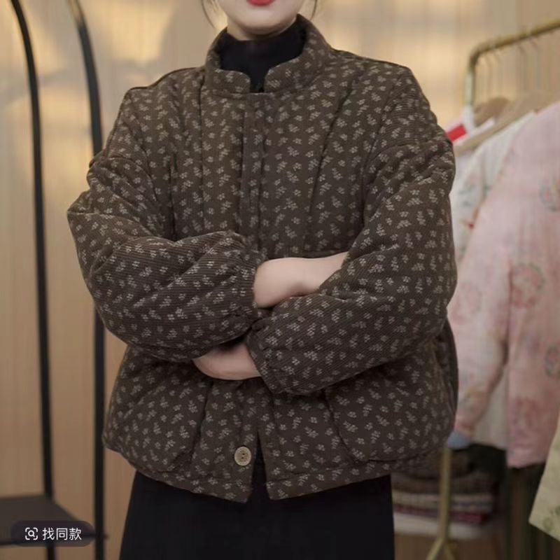 棉衣女装女士加绒毛领碎花棉服百搭女保暖上衣休闲外套【3月12日发完】