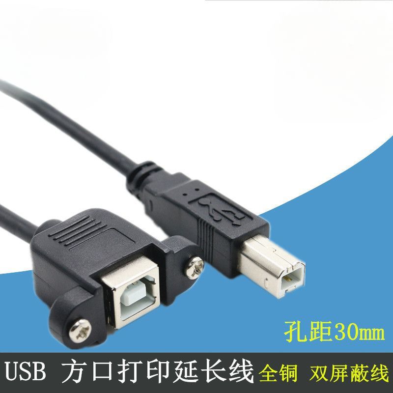 usb方口打印机公对母延长线B公转B母 USB2.0打印机延长线带螺丝孔