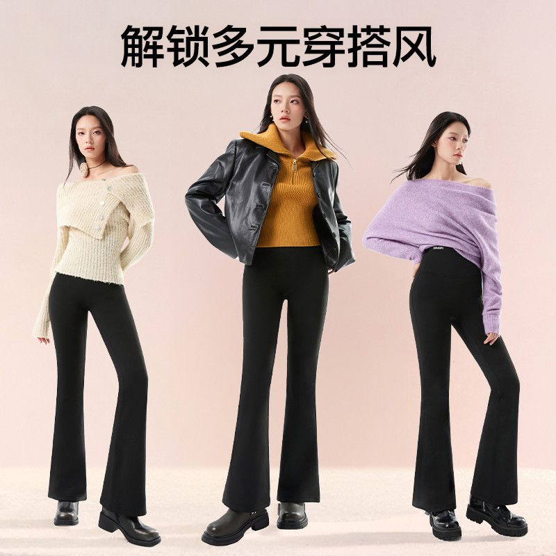 SIINSIIN加绒微喇喇叭裤瑜伽显瘦秋冬款长裤提臀显瘦黑色女鲨鱼裤