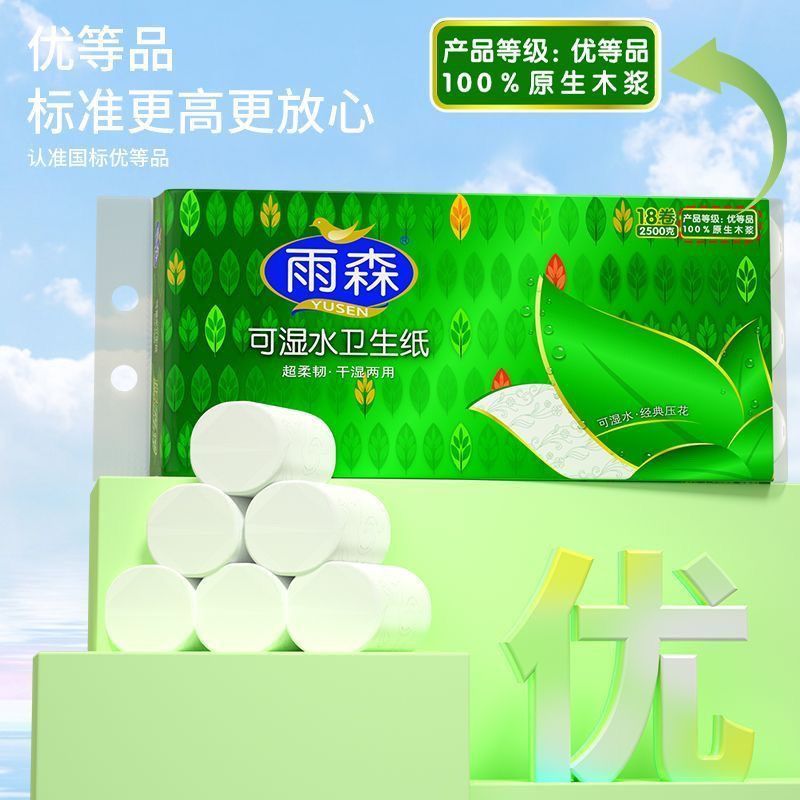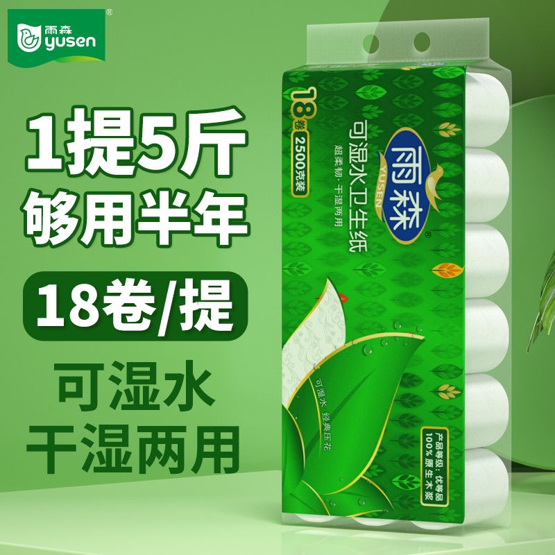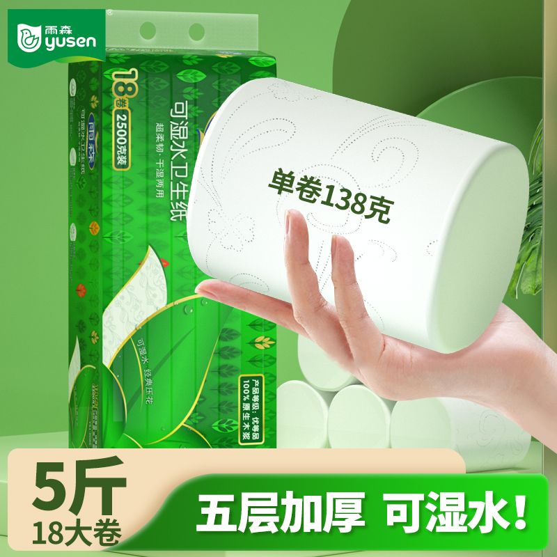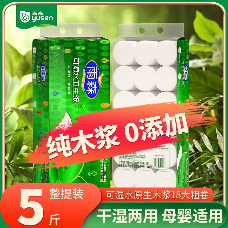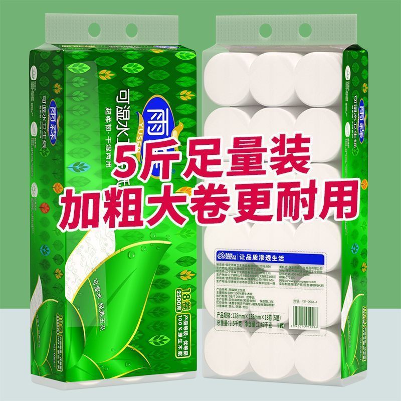 【5斤18卷】雨森卷纸卫生纸5层可湿水实惠装无芯学生厕纸纸妇婴纸