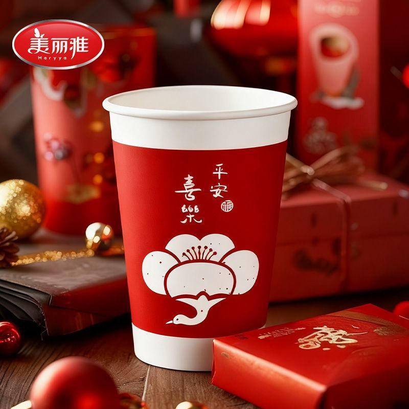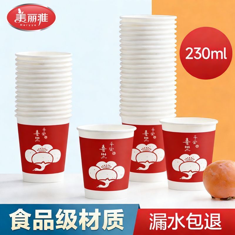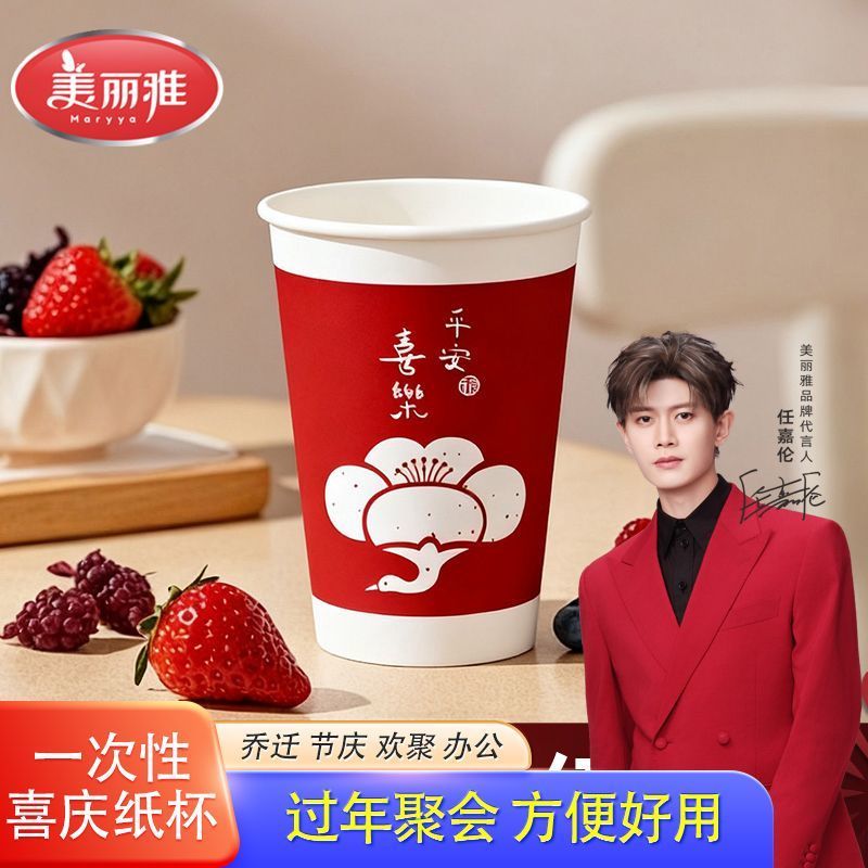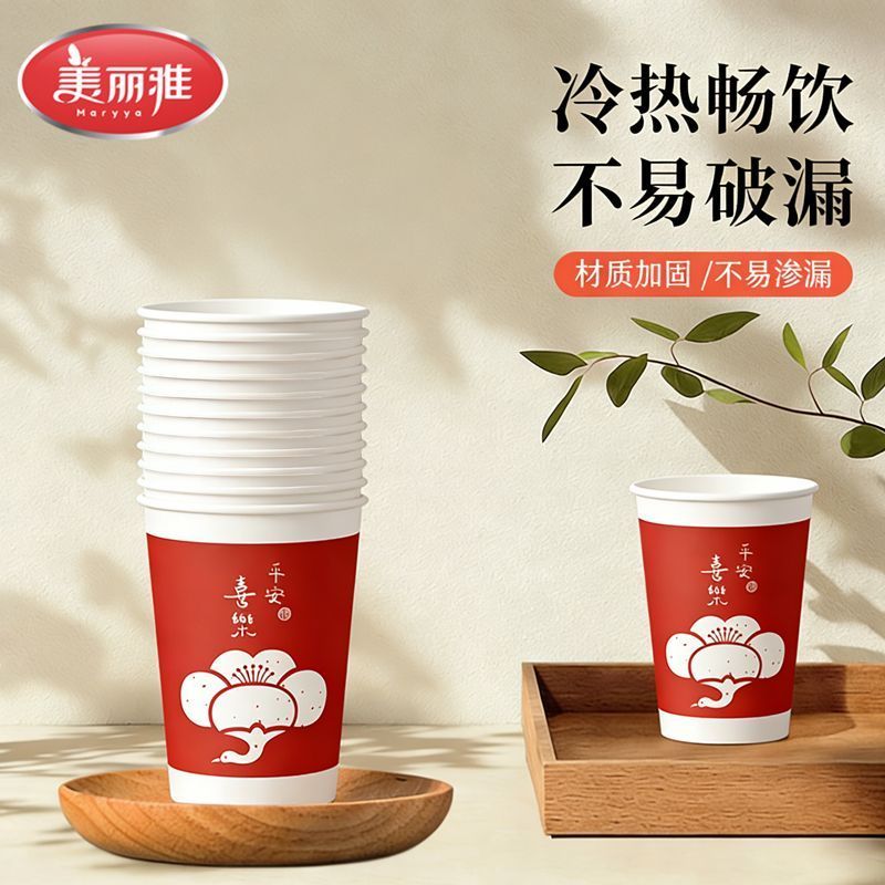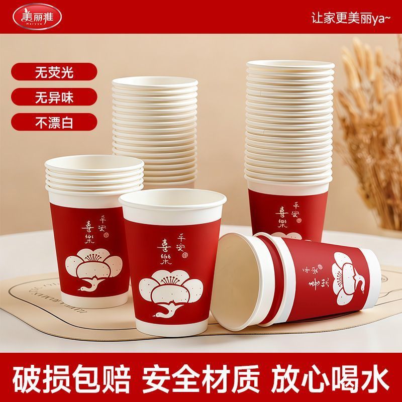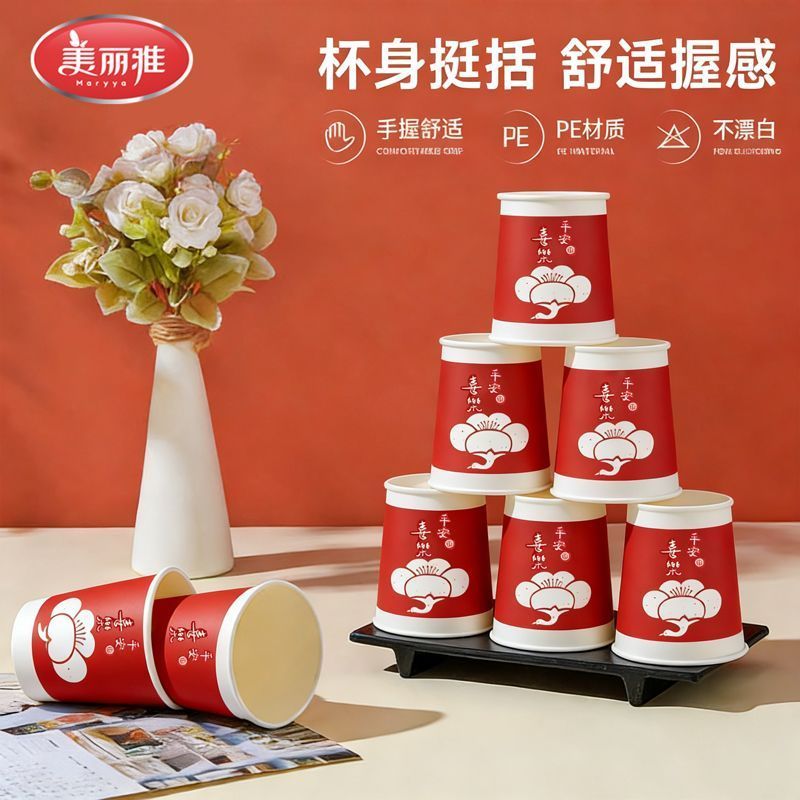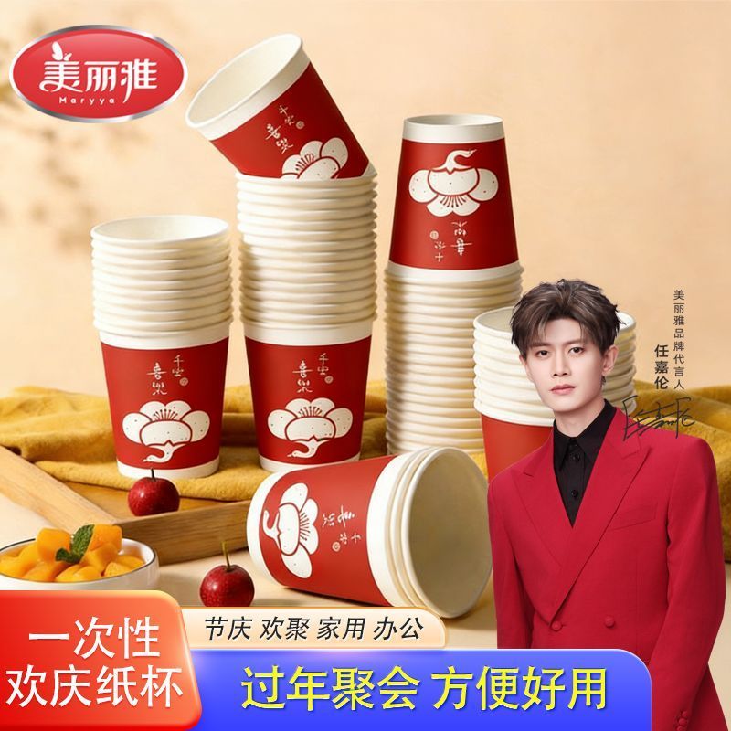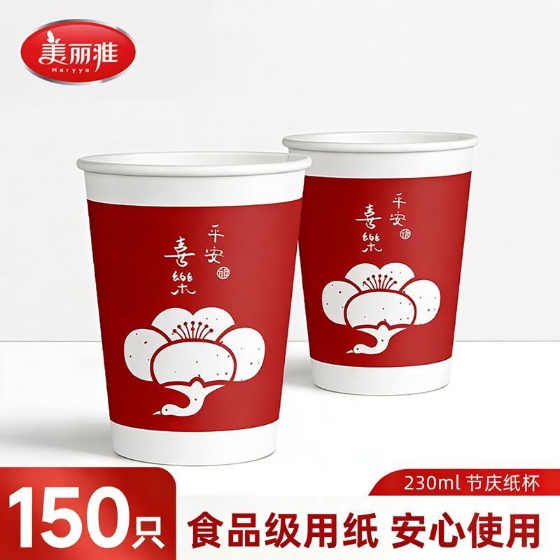 美丽雅一次性杯子150只节日欢聚纸杯过年家用喝水加厚商用办公室