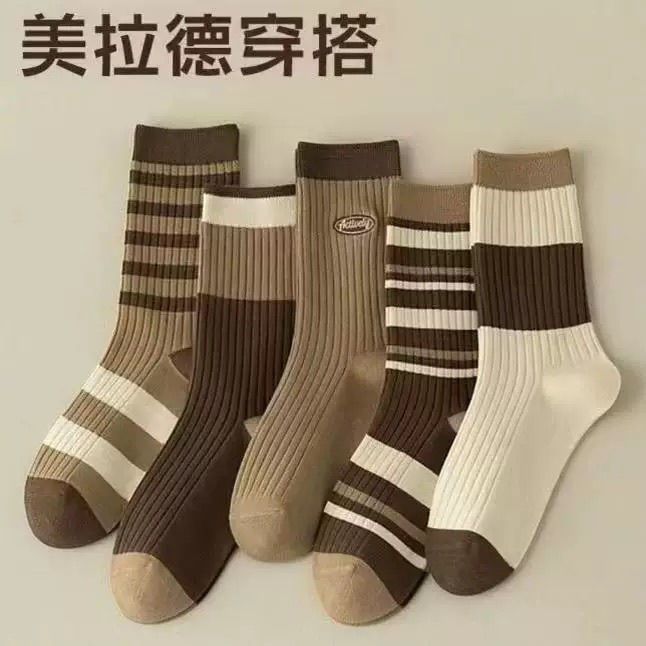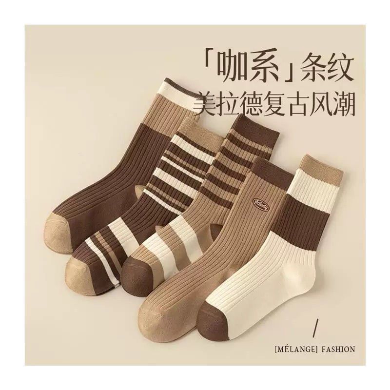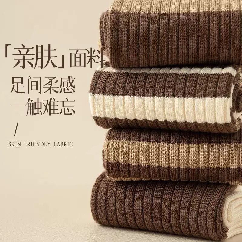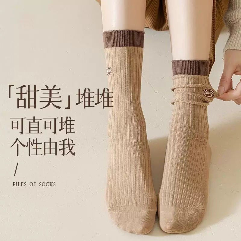 袜子女士秋冬中筒色系拉德防臭堆堆条纹吸汗长筒袜ins百搭