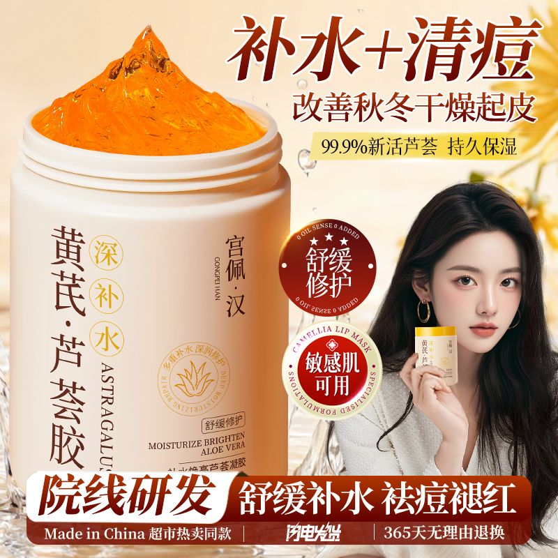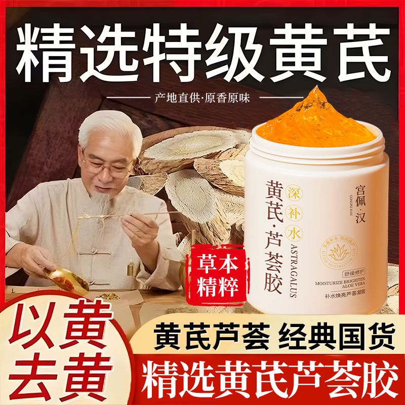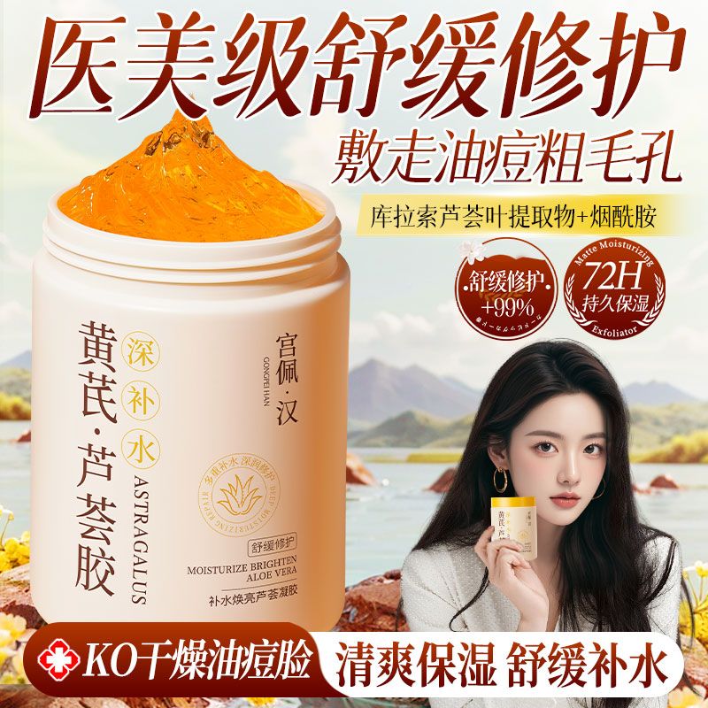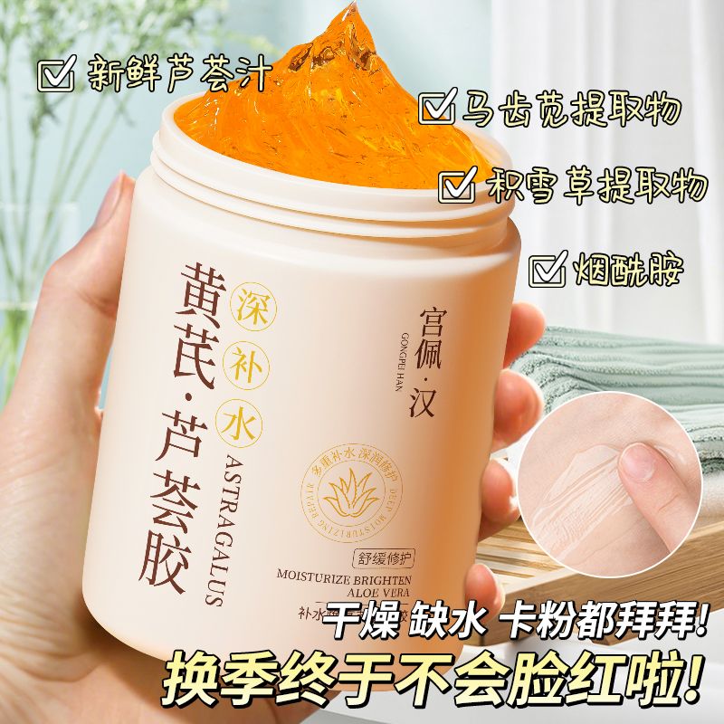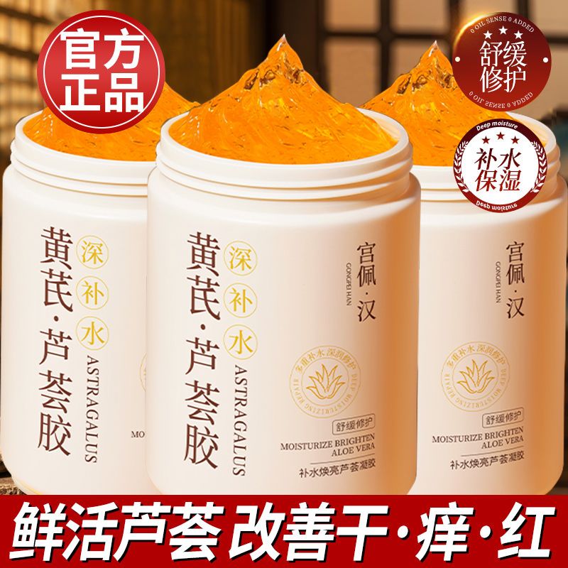 【官方】黄芪鲜活芦荟胶补水保湿提亮晒后消红淡印收缩毛孔女面膜