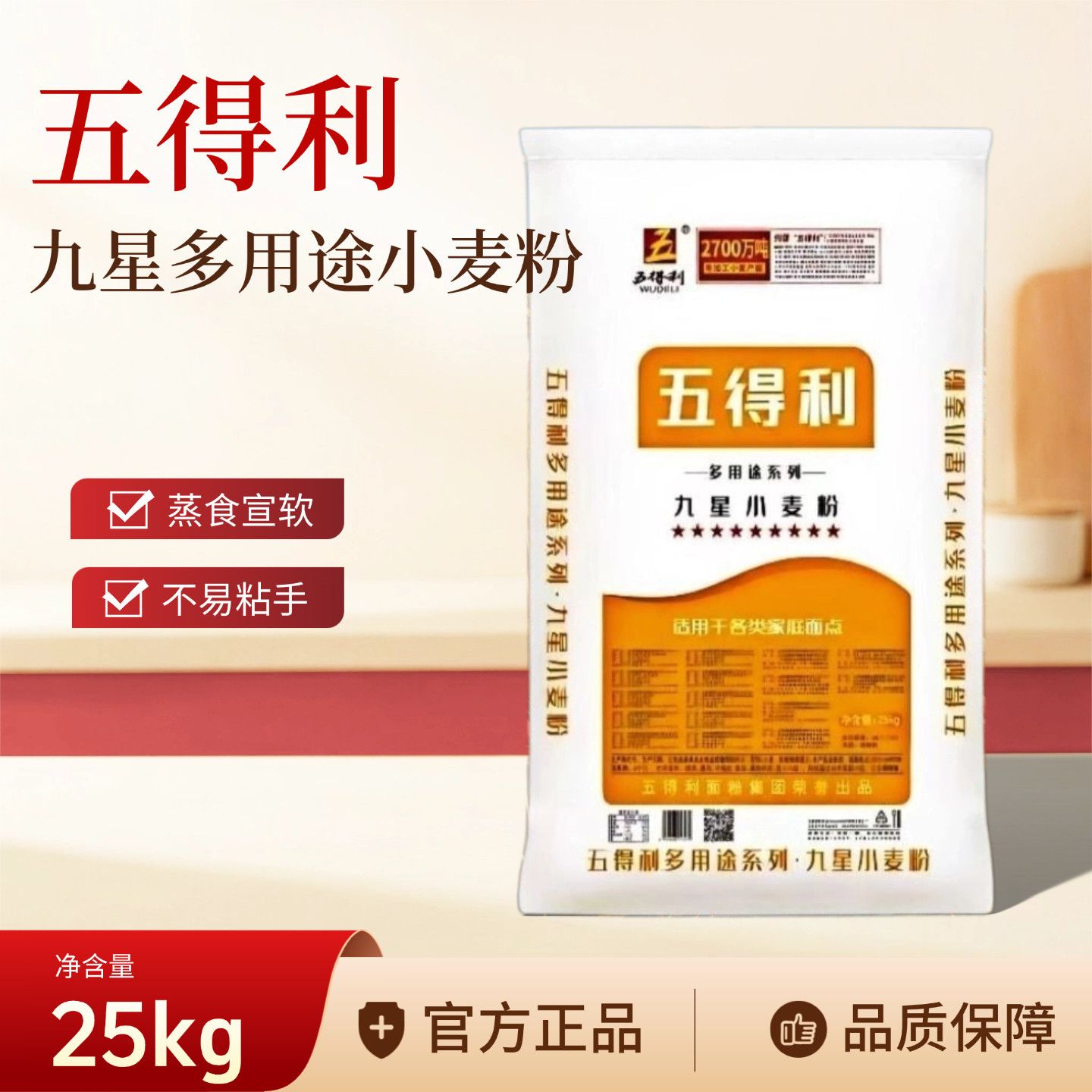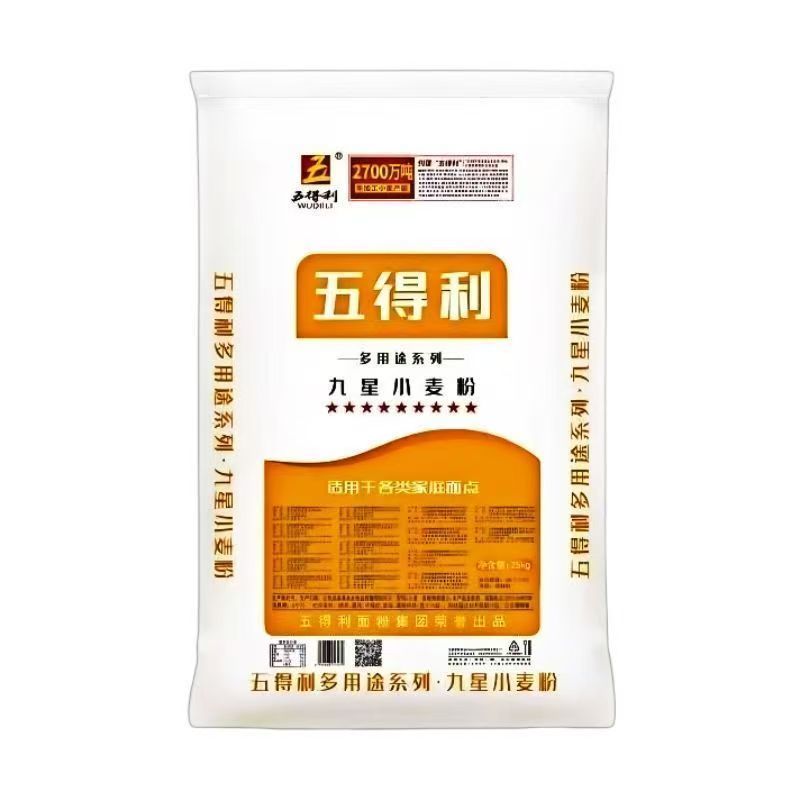 五得利正品面粉九星多用途小麦粉25包子馒头25kg面条饺子通用中筋