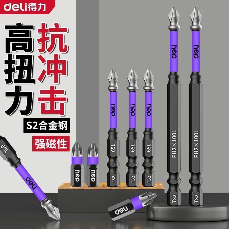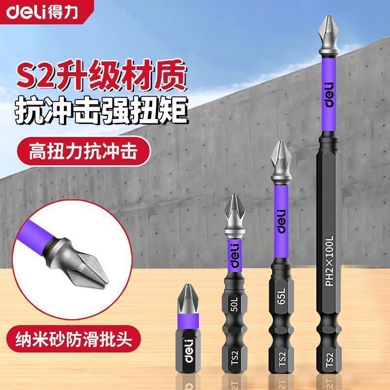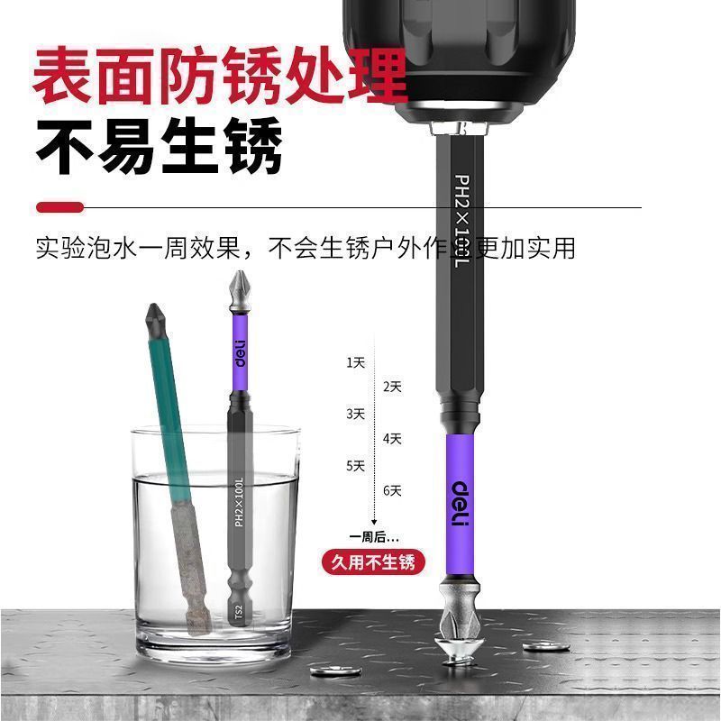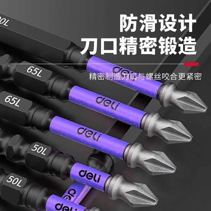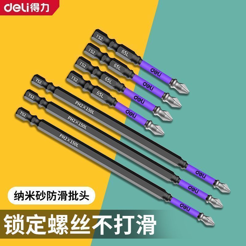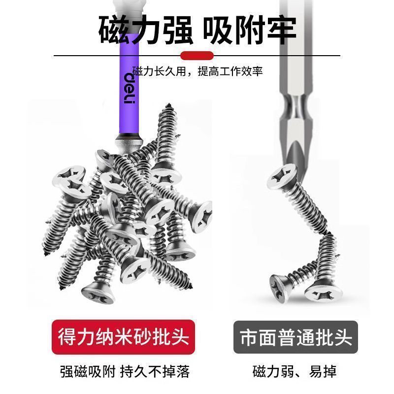 新品得力批头纳米砂防滑十字强磁超硬电动螺丝刀套装披转手起子机