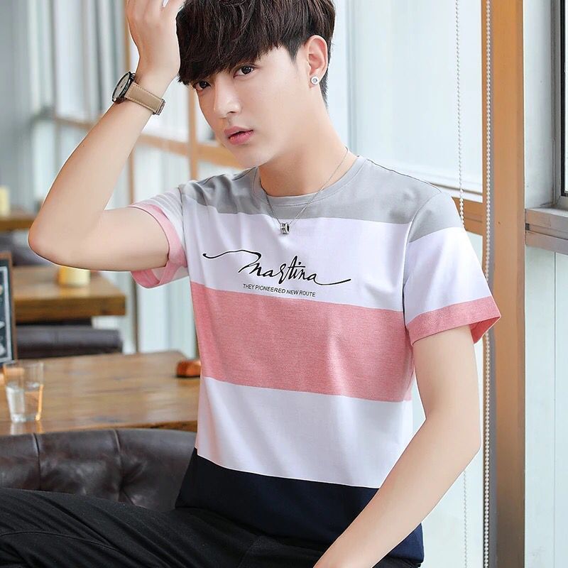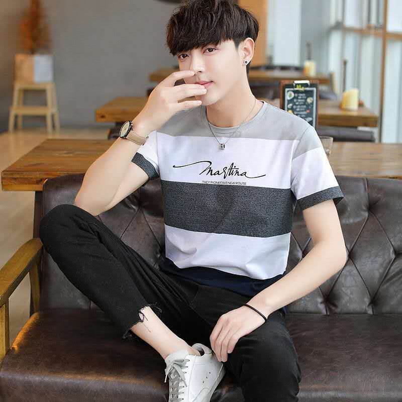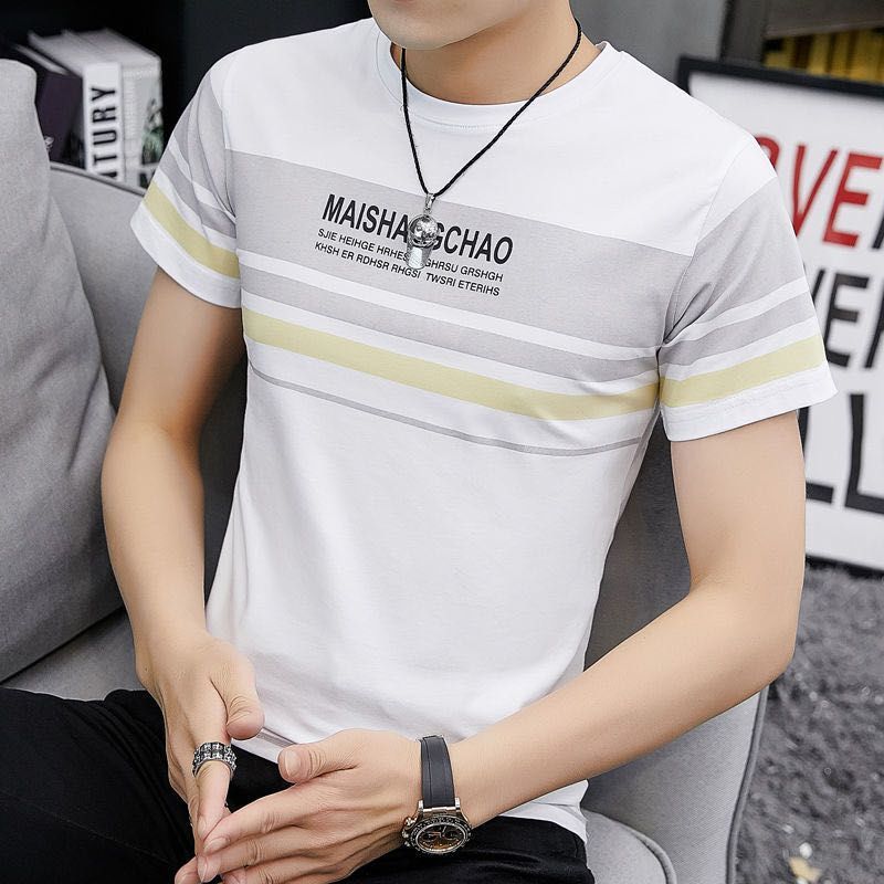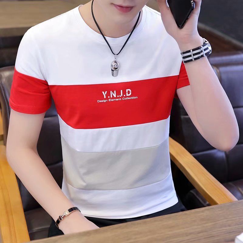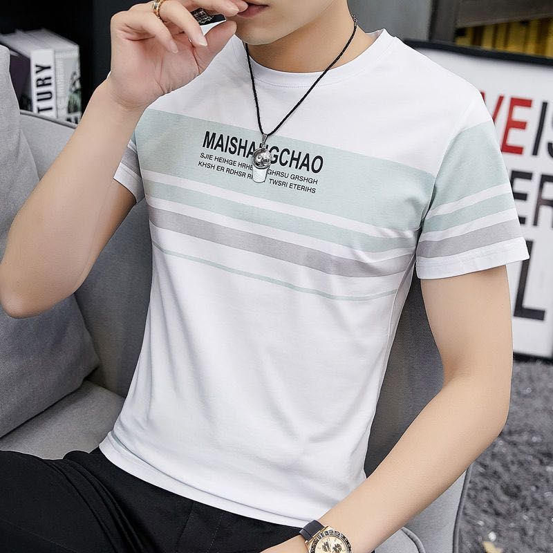 新款男士印花短袖t恤圆领韩版潮流青年短袖男装体恤修身衣服1/2件